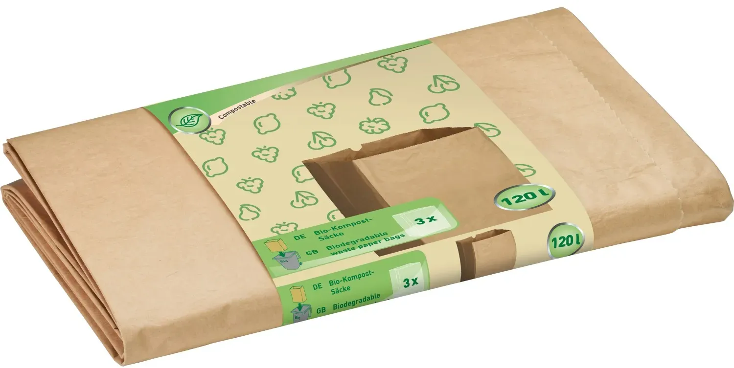 Kategorie: Müllsäcke - PGV - GTIN:7108447540400 - erhältlich in verschiedenen Abpackmengen 2-lagig - Kraftpapier braun natron Größe: 70 x 95 + 20 cm Fassungsvermögen: 120 Liter einsetzbar als Biomülltüte, Kompostbeutel oder auch zum Basteln und kreativen Gestalten - 31,10 Euro bei Amazon Marketplace Health & Personal Care - gefunden von billiger.de Dieses 25er-Pack von kompostierbaren und reißfesten Papiersäcken ist eine hochwertige und nachhaltige Lösung für Bioabfälle. ![]() ![]() Onism BIO Papier Mülleimerbeutel | 80-120 Liter | 25 Stück | Kompostierbar | Recyclebar | Kraftpapier | Müllsack | Papiersack | Tüte | Spielzeug | Reiß- und Nassfest | FSC-Zertifiert (120)