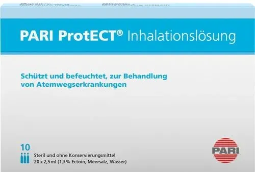 297.60 / 1 l - Kategorie: Arzneimittel - PARI - GTIN:4260020437057 - PZN:12420440 - 12420440: Pari GmbH - PARI ProtECT Inhalationslösung mit Ectoin Ampullen 25 ml - 7,44 Euro bei ayvita.de - gefunden von billiger.de ![]() ![]() Pari Protect Inhalationslösung mit Ectoin 10x2.5ml 25 ML