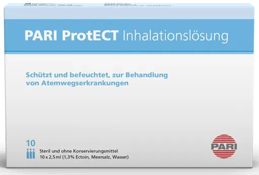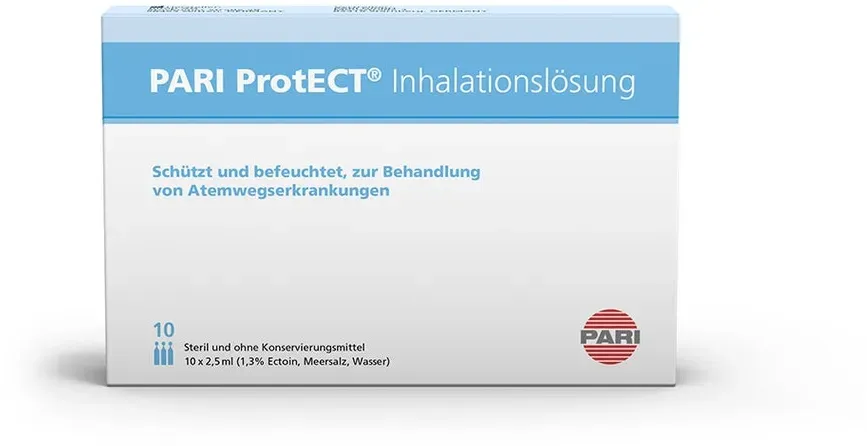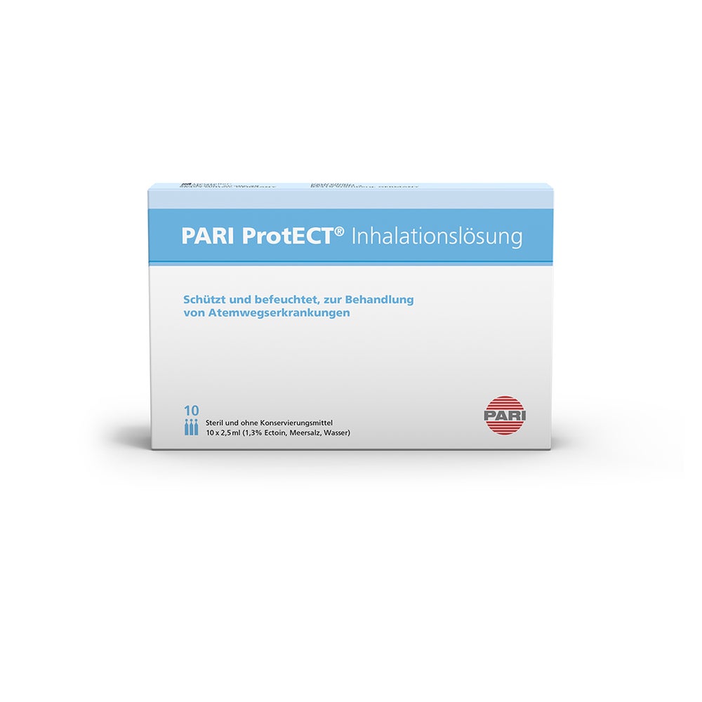 23 Händlerangebote bei billiger.de - Kategorie: Arzneimittel - PARI - Natürlicher Schutz für die Atemwege Isoton (1,3% Ectoin, Meersalz, Wasser) Kunststoffampullen mit je 2,5 ml - steril Schützt und befeuchtet die Atemwege bei Erkältungssymptomen und trockenem Husten Erste Inhalationslösung mit natürlichem Ectoin Isoton, steril und ohne Konservierungsmittel Die isotone Salzlösung mit Ectoin und Meersalz schützt und befeuchtet die Atemwege auf natürliche Weise. Ectoin bildet eine Wasserschicht, den Ectoin-Hydrokomplex. Dieser legt sich schützend und stabilisierend auf die Schleimhaut und verhindert so eine Austrocknung. PARI ProtECT ist geeignet zur vorbeugenden und unterstützenden Behandlung von Atemwegserkrankungen in Zeiten erhöhter Belastung durch Krankheitserreger, Allergene oder durch trockene Luft. Die Inhalationslösung ist steril und frei von Konservierungsmitteln und für jedes Alter geeignet. Empfehlung zur Anwendung Die Anwendung von PARI ProtECT sollte bei ersten Erkältungssymptomen und trockenem Husten ein- bis zweimal pro Tag über eine Dauer von mindestens einer Woche erfolgen. - GTIN:4260020437057 - PZN:12420440 ![]() ![]() PARI Protect Inhalationslösung mit Ectoin 10X2,5 ml