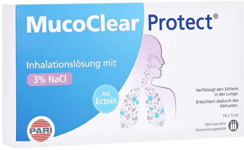 157,40 /l - Kategorie: Arzneimittel - PARI - GTIN:4260020439242 - PZN:16804114 - Wirksame Inhalationslösung von PARI GmbHMucoClear Protect ist eine Inhalationslösung, entwickelt von der PARI GmbH, die sanft und effektiv Schleim bei entzündlichen Atemwegserkrankungen löst. Ein besonderer Vorteil dieses Produkts sind die herausragenden zellschützenden Eigenschaften von Ectoin, einem der Inhaltsstoffe.Besondere Inhaltsstoffe von MucoClear Protect Hypertone Salzlösung (3% NaCl) mit Ectoin - 7,87 Euro bei medpex.de - gefunden von billiger.de ![]() ![]() PARI ProtECT Inhalationslösung mit Ectoin Ampullen 10X2.5 ml