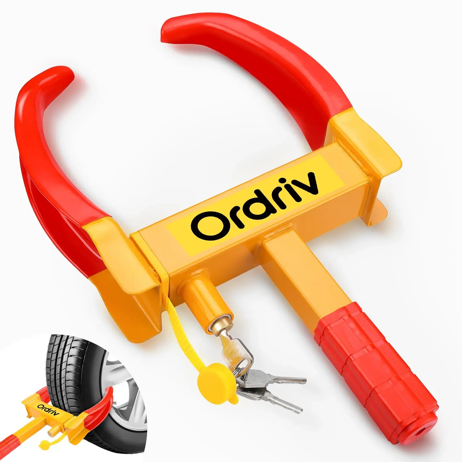 Kategorie: Zubehör für Autoanhänger - anttyscar - EINSTELLBAR- Dieses Auto-Radschloss verfügt über insgesamt 9 Verriegelungspunkte, um die beste und sichere Verbindung zu erreichen, die nach Ihren Bedürfnissen eingestellt werden kann. Geeignet für Reifenbreiten von 19 cm bis 30 cm Die ANTISäGE und ANTI-STEMMEN Reifenklemme besteht aus hochwertigem Eisen, was sie extrem stark, haltbar und langlebig macht. Der Griff ist weich beschichtet, um ein bequemes Tragen zu gewährleisten. Besonders wichtig ist die PVC-Beschichtung der Klemme, die verhindert, dass die Felgen zerkratzt oder beschädigt werden. SICHER VERSCHLOSSEN Die Reifenklemme ist mit einer Verschlusskappe am Schloss ausgestattet und wird mit zwei Schlüsseln geliefert. Dadurch wird das Eindringen von Wasser verhindert und ein Schutz vor Korrosion bei langer Standzeit gewährleistet. Das sichere Schloss der Kralle rt, dass sie ausschließlich vom Besitzer selbst entfernt werden kann. STARK UND STABIL Dank der äußerst stabilen Konstruktion der Radkralle wird nicht nur der Diebstahl Ihres Fahrzeugs verhindert, sondern auch ein ungewolltes Wegrollen. Dies ist besonders hilfreich, wenn Ihr Fahrzeug auf einer Erhöhung abgestellt ist und die Handbremse nicht angezogen wurde. Die Autokralle ist mit auffälligem und schönem Rot und Gelb gestaltet, so dass Die Wegfahrsperre sehr auffällig ist.Die Parkkralle ist für die meisten Fahrzeuge geeignet, wie PKW, LKW, Motorräder, Rasenmäher, Anhänger, Wohnwagen , ATVs, RV-Kleinflugzeuge, ... Die RELAX4LIFE Wegfahrsperre aus schwerem Eisen ist eine robuste und verstellbare Option für eine Vielzahl von Fahrzeugen, von LKW bis Motorrad. ![]() ![]() RELAX4LIFE Wegfahrsperre aus schwerem Eisen, Radkralle Anti-Diebstahl, Reifenkralle mit 3 Schlüsseln, Parkkralle Diebstahlsicherung, Reifenklaue verstellbar für LKW, PKW, Motorrad und Anhänger
