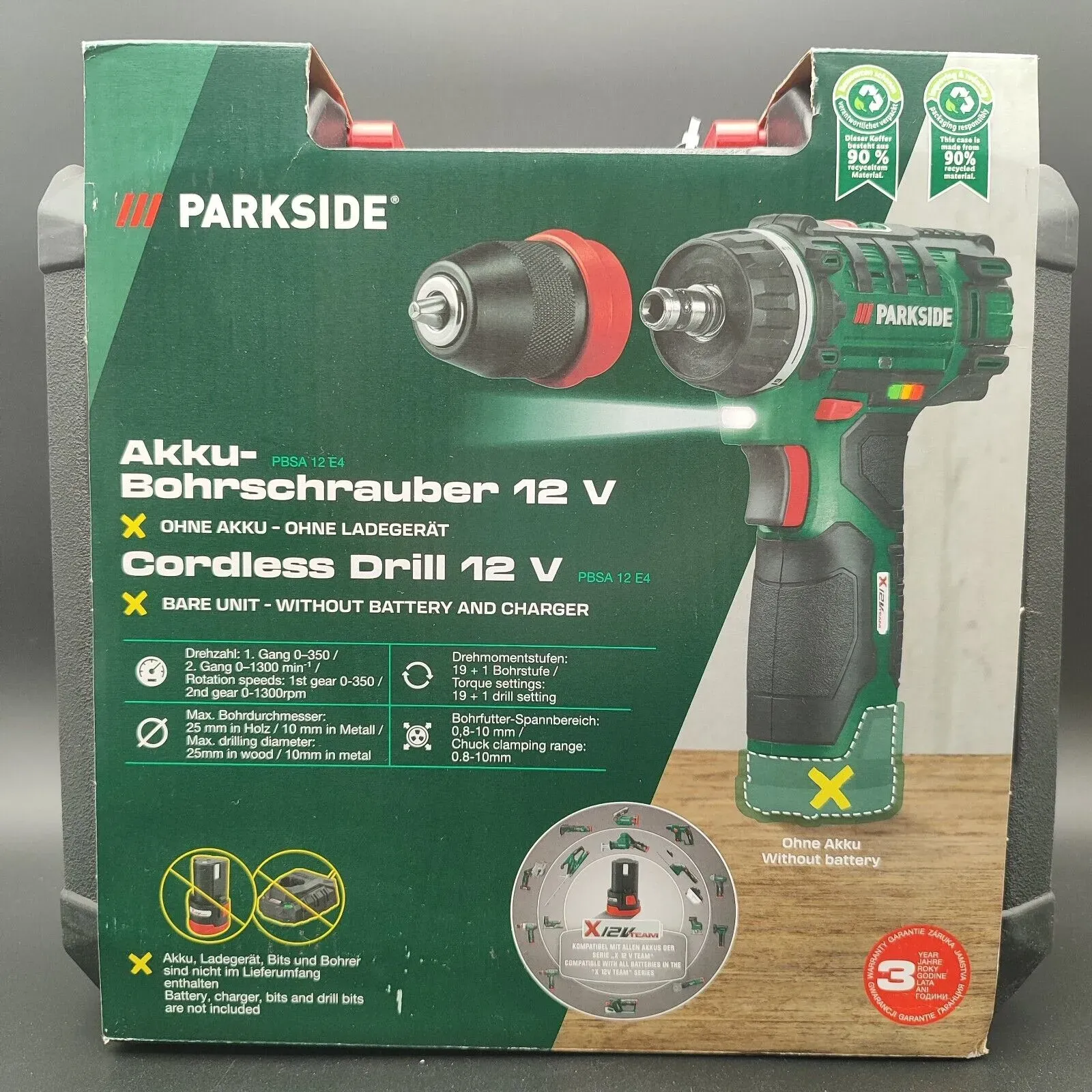 EAN: 4054599024301 - Du bist auf der Suche nach einem zuverlässigen und leistungsstarken Werkzeug, das dich bei all deinen Heimwerkerprojekten unterstützt? Dann ist der PARKSIDE 12V Akku-Bohrschrauber PBSA 12 E4 genau das Richtige für dich!Mit diesem robusten und präzisen Akku-Bohrschrauber meisterst du jede Herausforderung ob beim Möbelaufbau, Renovierungsarbeiten oder kleineren Reparaturen im Haushalt. Das kompakte Design und die einfache Handhabung machen den PBSA 12 E4 zum idealen Begleiter für Profis und Hobby-Handwerker gleichermaßen.Warum du diesen Bohrschrauber brauchst:Leistung und Präzision: Dank des kraftvollen 12V-Motors erzielst du mühelos perfekte Ergebnisse. Bohren und Schrauben geht wie von selbst! Komfortable Handhabung: Die ergonomische Bauweise sorgt für maximalen Komfort und eine einfache Bedienung auch bei längeren Einsätzen. Flexibilität pur: Der Bohrschrauber kommt ohne Akku und Ladegerät, was dir die Freiheit gibt, vorhandene Akkus und Ladegeräte der PARKSIDE -Serie zu verwenden. Vielseitigkeit: Egal, ob Holz, Metall oder Kunststoff der PBSA 12 E4 ist für verschiedene Materialien und Aufgaben ideal geeignet.Stell dir vor, wie einfach du mit dem PARKSIDE 12V Akku-Bohrschrauber deine Heimwerkerträume verwirklichen kannst. Kein frustrierendes Schrauben mehr von Hand, keine ungenauen Bohrungen dieses Werkzeug gibt dir die Kontrolle und Präzision, die du verdienst. Gib dir selbst die Möglichkeit, Projekte endlich schnell, sauber und professionell zu ... Ein weiteres günstiges Angebot für den Bohrschrauber ohne Akku, ideal als Ersatz oder Ergänzung. ![]() ![]() PARKSIDE 12V - Akku Bohrschrauber eBay PBSA 12 E4 NEU ohne Akku Parkside