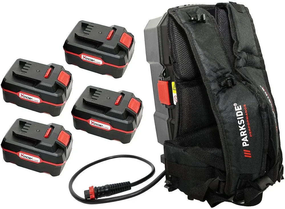 lieferbar-in 2-3 Werktagen bei dirPARKSIDE PERFORMANCE 20V/40V Akku Rucksack PPRA 20 + 4x PARKSIDE 4Ah Akku Akku-Set (20 V), Bietet Steckplätze für bis zu vier X20V-Akkus
