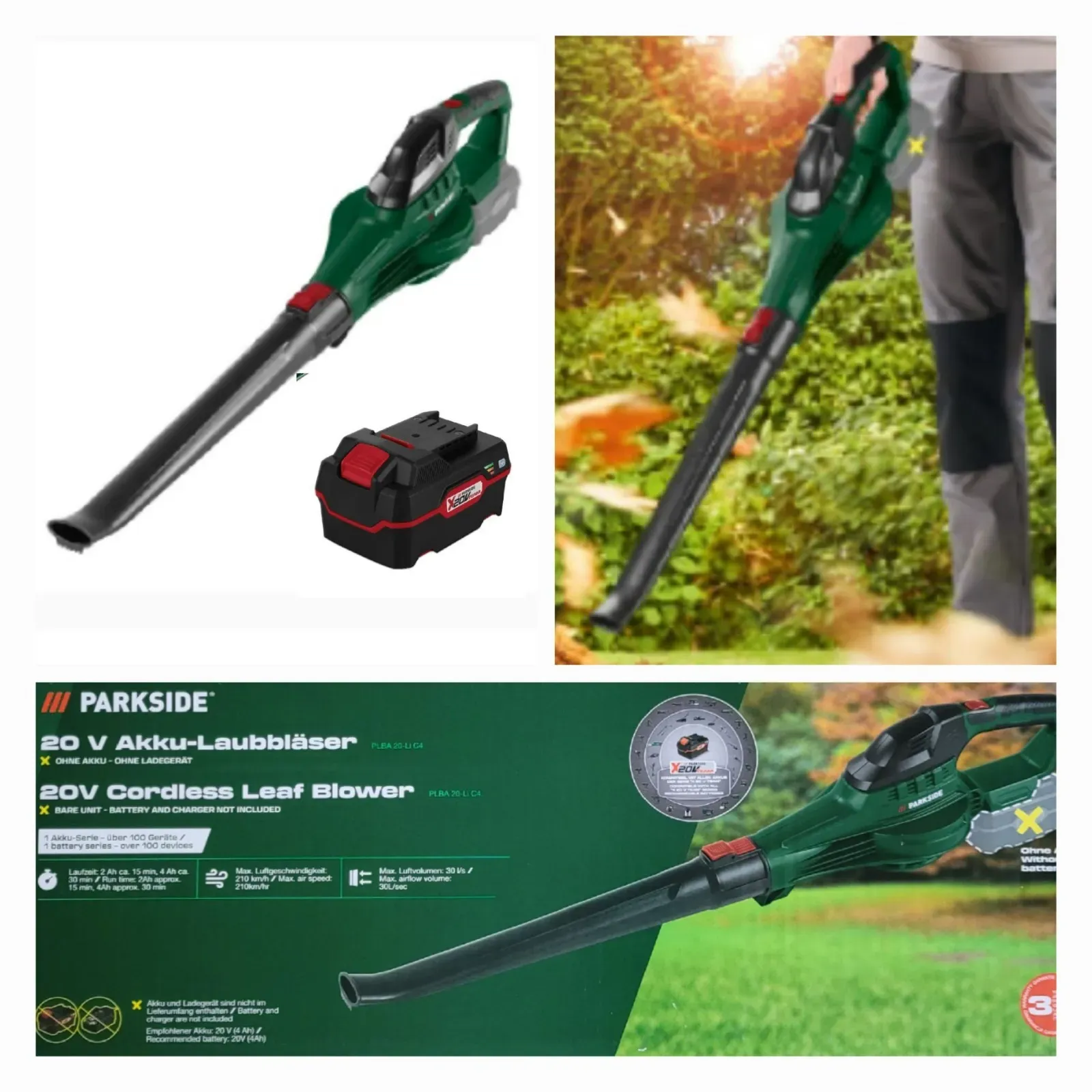Kategorie: Laubsauger & Laubbläser - Parkside - GTIN:0038407653123 - EigenschaftenZum einfachen und schnellen Entfernen von LaubLeistungsfähiges Gebläse mit kraftvollem Luftstrom sowie hoher LuftgeschwindigkeitKomfortable Handhabung durch geringes Gewicht in optimaler, ergonomischer BalanceBlasrohr mit praktischer Kratzkante zum Lösen von feuchtem, anklebendem LaubGriff mit rutschhemmender Softgrip-AusstattungEinfach sowie platzsparend verstaubar durch Aufhängevorrichtung und abnehmbares BlasrohrGerät kompatibel mit allen Akkus der Serie PARKSIDE X 20 V TeamAkku-Empfehlung: 20 V (4 h)Lieferung erfolgt ohne Akku und Ladegerät Technische DatenMax. Luftgeschwindigkeit: 210 km/hLeerlaufdrehzahl: 12.000 min-1 MaterialKunststoff, Fiberglas Maßeca. 89 x 16 x 22 cm Gewichtca. 1500 g - 38,79 Euro bei Kaufland.de - gefunden von billiger.de ![]() ![]() Parkside 20V - Akku Laubbläser eBay - mit/ohne Akku,Ladegerät X20V Team, 210/km/h, NEU