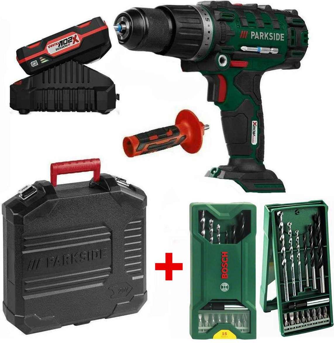 lieferbar-in 4-5 Werktagen bei dirParkside Akku-Schlagbohrschrauber 20V Schlagbohrschrauber PSBSA 20-Li C3 Akku 4 Ah+Bosch Bohrer Set