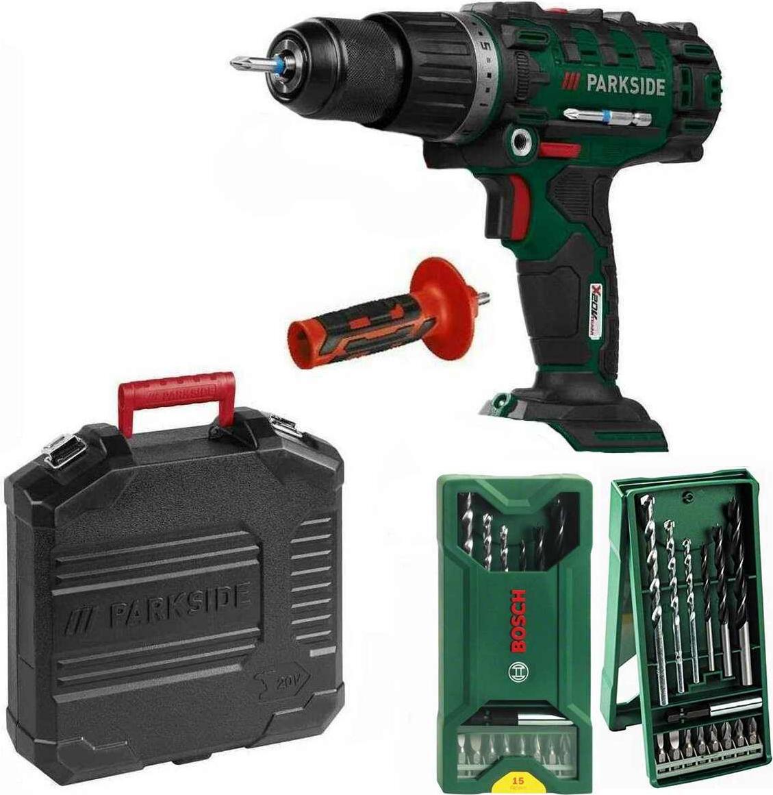 lieferbar-in 3-4 Werktagen bei dirParkside Akku-Schlagbohrschrauber 20V Schlagbohrschrauber PSBSA 20-Li C3 Akku 2 Ah+ Bosch Bohrer Set