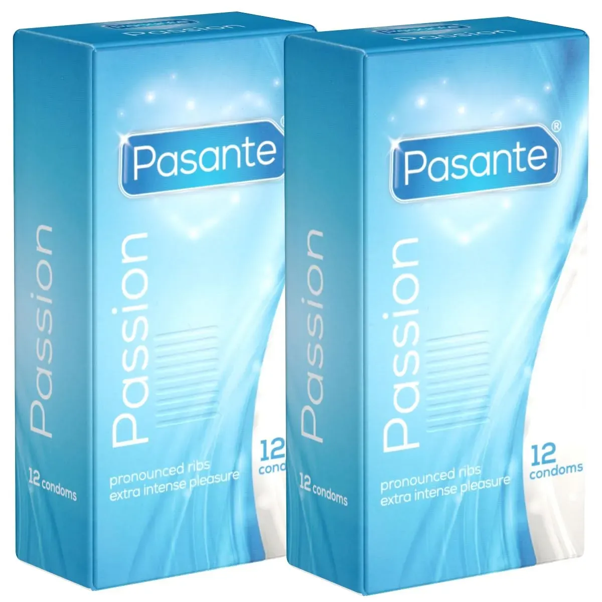 Zustand: Neu - 0,51 € / stück - Kondome für Männer - Pasante - 5060359483263 - EAN: 5060359483263 - Mit Rippen für noch mehr Stimulation Verstärkte Gefühle bei jeder Bewegung Für einen besonders intensiven Orgasmus Mit Feuchtbeschichtung und Reservoir Nominale Breite: 52mm, Länge: 190mm - 2 Händler im amazon.de Marketplace ![]() ![]() Pasante Passion (Ribbed), Rippenkondome für verstärkte Gefühle und einen besonders intensiven Orgasmus, 12 x 3 Stück