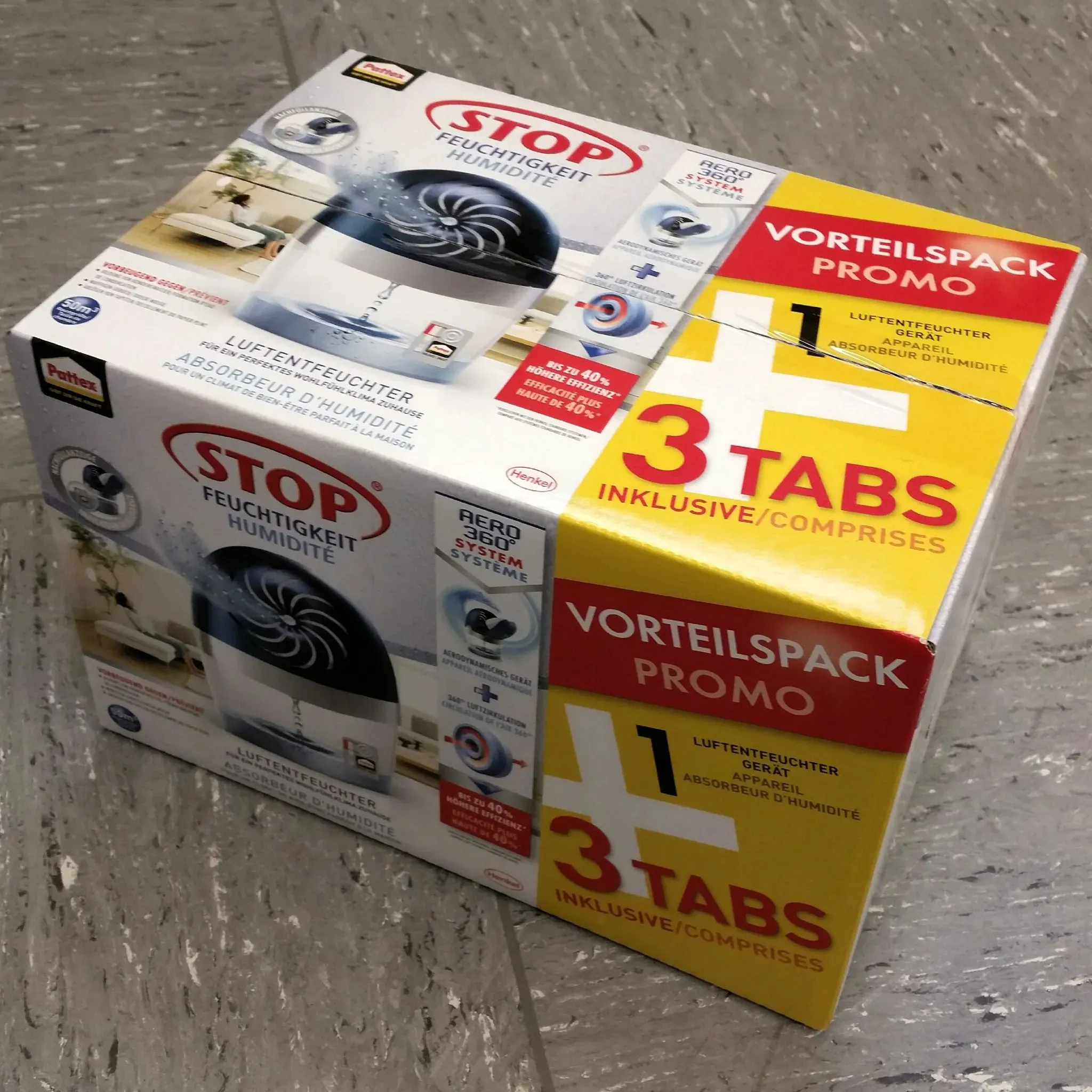 Kategorie: Luftentfeuchter - Pattex - GTIN:4057278000832 - Artikelbezeichnung Besondere Merkmale , Luftentfeuchter für Räume bis 50 m3, Farbe & Material Farbe , Schwarz, - 23,59 Euro bei OTTO - gefunden von billiger.de Dieses Angebot mit dem Aero 360° Luftentfeuchter und 5 Tabs ist eine gute Investition für eine längerfristige Nutzung ohne sofortigen Nachkauf von Tabs. ![]() ![]() Pattex 9H PLAGS Aero 360° Luftentfeuchter, Gerät (Aerogerät und 5 Tabs)