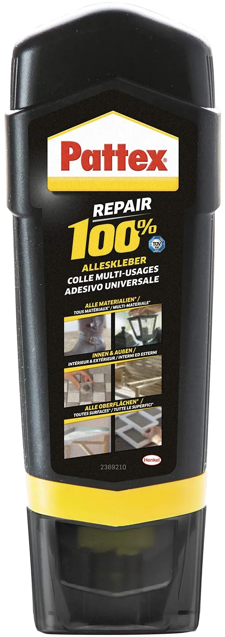 Kategorie: Klebeprodukte - Pattex - GTIN:4015000420099 - Starker Alleskleber Der Universalkleber kann für eine Reihe verschiedener Materialien wie Holz, Metall, Stein, Keramik, Glas oder den meisten Textilien verwendet werden. Kopfstand-Flasche Dank ihrer Größe und der ergonomischen Form ist die kopfüber stehende Flasche aufrecht lagerbar und der Flüssigkleber sofort einsatzbereit. Vielseitige Formel Dank Flextec-Formel geeignet für flexible Materialien. Der Reparaturkleber ist wasserfest, beständig gegen UV-Strahlung, Erschütterungen & Temperaturen (-50 C bis +110 C). Trocknet transparent Der hitzebeständige Kleber kann problemlos auf mittelgroßen bis großen Flächen angewendet werden und ist nach dem Trocknen fast unsichtbar. Praktischer Lieferumfang Pattex Repair 100% Alleskleber, Reparaturkleber mit starker Flextec-Formel, 1x100g Kopfstand-Flasche. *Nicht geeignet für PE, PP, PTFE, ABS, PS (steif), Kupfer, Messing. - 5,29 Euro bei Amazon Marketplace Home Improvement - gefunden von billiger.de Dieser Repair Extreme Kleber ist nicht-schrumpfend, flexibel und temperaturbeständig, perfekt für anspruchsvolle Reparaturen innen und außen. ![]() ![]() Pattex Repair Extreme, nicht-schrumpfender und flexibler Alleskleber, temperaturbeständiger Reparaturkleber, starker Kleber für innen und außen, 1x20g Tube