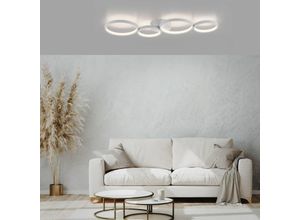 Lampen Leuchten Wohnen - - Per Wandschalter 3-stufig dimmbar: LED-Deckenleuchte Kiringe Die ganz in Weiß gehaltene, aus Aluminium und Eisen gefertigte LED-Deckenleuchte Kiringe setzt sich aus vier kreisförmigen Elementen zusammen. Die integrierten LEDs geben warmweißes Licht kraftvoll ab und sorgen für eine gute Allgemeinbeleuchtung. Dank der verbauten Switchmo-Technologie lässt sich die Intensität des Lichtes über den regulären Wandschalter dreistufig dimmen. - Versandkostenfrei: false - Lieferzeit: 1 Tag - Sofort verfügbar: true - Hersteller-Farbe: weiß - Farbe: Weiß - - Versand mit DHL, DPD - Zahlungsoptionen: Vorkasse, Paypal, Kreditkarte, Rechnung, Nachnahme, Ratenkauf - bei Lampenwelt - gefunden von shopping24 Diese Deckenleuchte für 140 Euro bietet ein warmes holzfarbenes Design und eine Größe von 82x50 cm. Hoeffner.d e Paul Neuhaus Deckenleuchte ¦ holzfarben ¦ Maße (cm): B: 82 H: 9 T: 50.0