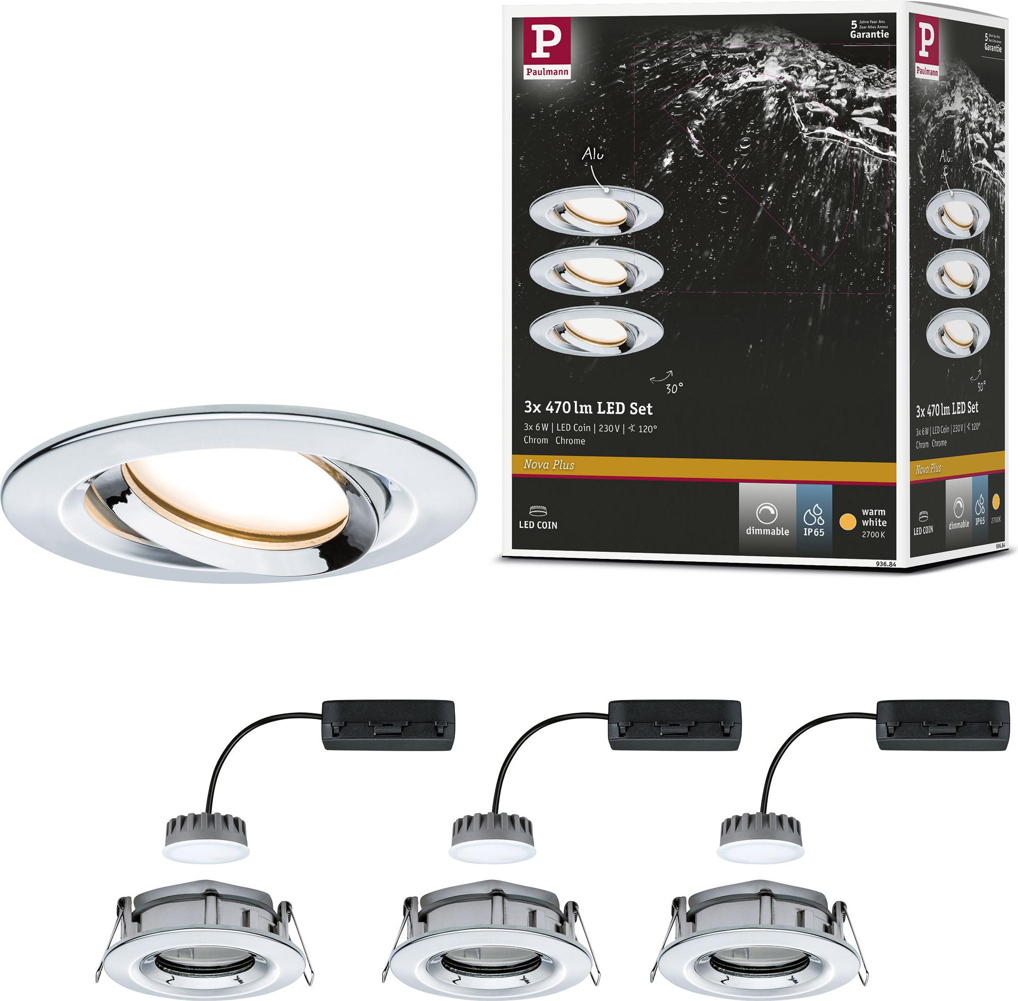 Auf Lager Versand durch AmazonPaulmann 93684 Nova Plus LED Einbauleuchte 3er Set rund schwenkbar 3x6W IP65 dimmbar Einbaustrahler Chrom Spot Aluminium Einbaulampe 2700K