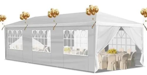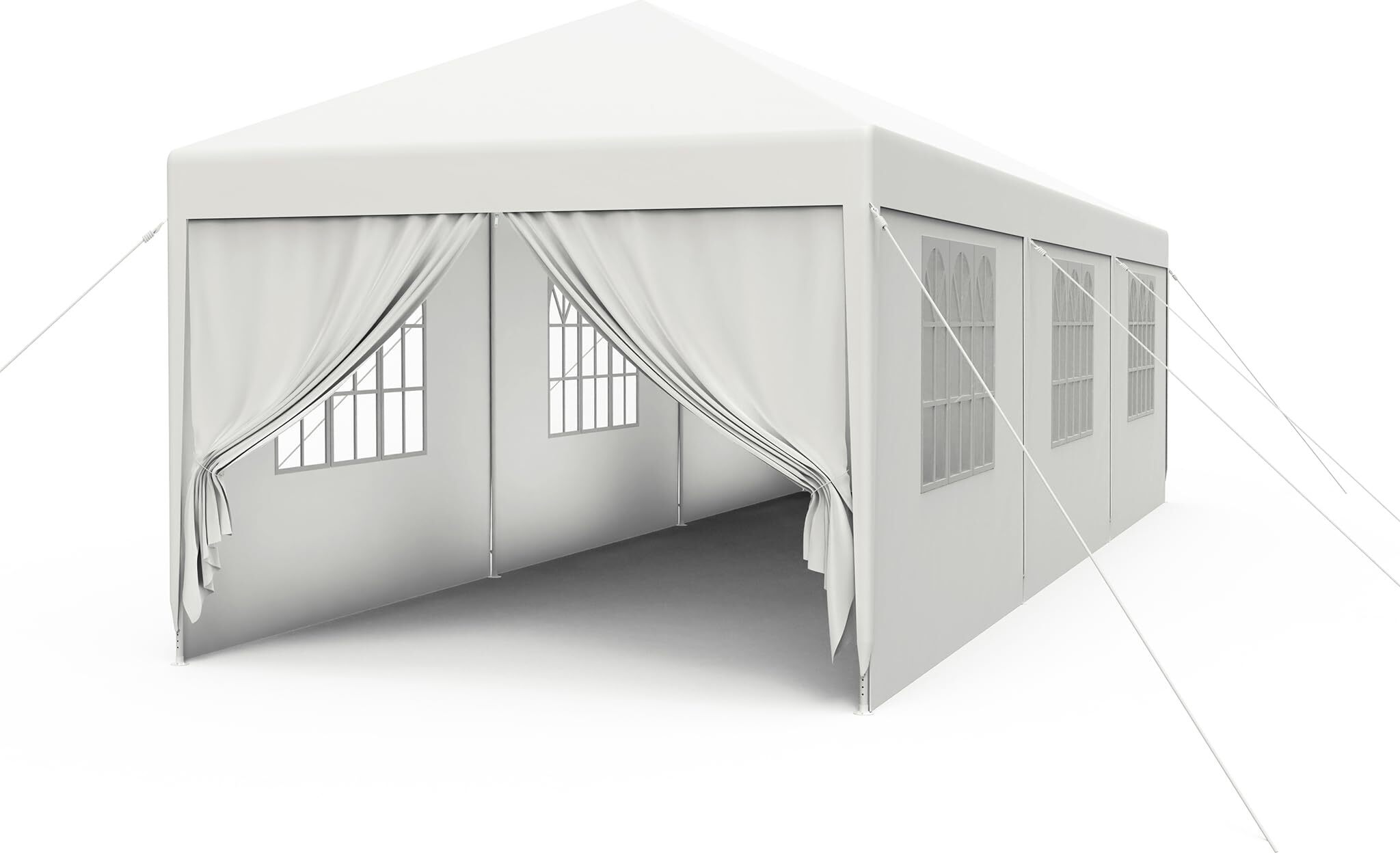 Zustand: Neu - Pavillons - Bonnlo - FP-1580 RIV134 - - Vielseitige Einsatzmöglichkeiten: Unser 3x9m-Zelt adaptiert sich flexibel zu allen Außenanlässen - ob für eine intime Hochzeit, ein Haushaltsfest, als Schutz für Fahrzeuge am Parkplatz oder für unterhaltsame Camping-Abende. Robuste und langlebige Konstruktion: Bestehend aus hochdichtem PE-Gewebe und stabilen spiralförmigen Eisenschläuchen, kombiniert das Zelt Eleganz mit Stärke. Es rt Langlebigkeit und Zuverlässigkeit auch bei reger oder windiger Wetterlage. Praktische Ausstattung mit 8 Wänden: Das Set umfasst 8 Wände. Diese Konfiguration bietet optimalen Schutz und Flexibilität. Einfache und schnelle Montage: Dank der mitgelieferten Zubehörteile und der unkomplizierten Bauweise lässt sich das Zelt schnell aufbauen - ideal für spontane Veranstaltungen oder Menschen, die auf Praktikabilität setzen. Wasserdichte Beschaffenheit: Das hochwertige PE-Gewebe sorgt für eine zuverlässige Wasserdichtigkeit, sodass Sie Ihre Veranstaltungen auch bei plötzlichem Regen uneingeschränkt genießen können - kein Kompromiss bei Schutz und Komfort. - Verkäufer: Yondox im amazon.de Marketplace ![]() ![]() Bonnlo Pop-up Pavillon, Faltpavillon 3x9m, Wasserdicht Partyzelt mit 8 Wände, Gartenpavillon für Outdoor Hochzeit Garten Camping Party, Weiß (3 * 9 m mit 8 Wänden)