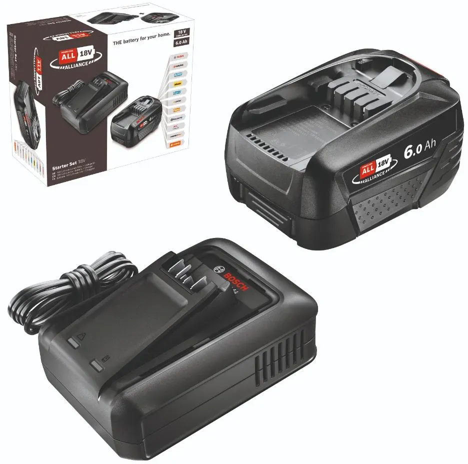 Kategorie: Zubehör für Elektrowerkzeug - Bosch - GTIN:4053423257953 - Starter-Set 18 V (1 x 6,0 Ah + AL 18V-44) von BoschLaden und loslegen - Flexibilität im 18V POWER FOR ALL-System Starter-Set Starter-Set 18 V (1 x 6,0 Ah + AL 18V-44). Laden und loslegen Flexibilität im 18V POWER FOR ALL-System. Set mit Ladegerät AL 18V-44 und 6,0-Ah-Akku: sorgt für Flexibilität und spart gleichzeitig Geld. Schnelles Laden: ~87 min für einen 6,0-Ah-Akku. Integrierte Wandhalterung und Gummifüße für einen sichern Stand auf allen Oberflächen. POWER FOR ALL: ein Akku und ein Ladegerät für ein komplettes Home & Garden Gerätesystem. 1 x Akku PBA 18V 6.0Ah. Ladegerät AL 18V-44. Karton Integrierte Wandhalterung und Gummifüße für einen sichern Stand auf allen OberflächenPOWER FOR ALL - ein Akku und ein Ladegerät für ein komplettes Home & Garden GerätesystemSchnelles Laden - ~87 min für einen 6.0-Ah-AkkuSet mit Ladegerät AL 18V-44 und 6.0-Ah-Akku - sorgt für Flexibilit - 105,90 Euro bei tuul.zone - gefunden von billiger.de ![]() ![]() Bosch Starter-Set - 18 V eBay 1x PBA 18V 6.0Ah W-C Akku 6,0 Ah + AL 18V-44 (1600A032A8)