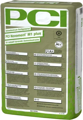 EAN: 4083200038888 - PCI Novoment M3 plus Schnellestrich-Fertigmörtel für beschleunigt härtende Zementestriche Produkteigenschaften:Belegbar mit Fliesen nach ca. 3 Tagen, begehbar nach ca. 1 Tag.Fertigmörtel, daher kein Abmischen mit Sand an der Baustelle nötig.Lange Verarbeitungszeit, trotz kurzer Aushärtezeit ca. 1 Stunde verarbeit- und glättbar.Geeignet für Pumpenförderung, auch bei höheren Temperaturen.Temperaturbeständig von 30 C bis + 80 C, deshalb geeignet für Balkone, Terrassen, Garagen, Industriebeläge mit Heißdampfreinigung.Feuchtigkeitsunempfindlich, deshalb geeignet für Dauernassbereiche.Begrenzte Durchbiegung (Eignungsprüfung nach 6.2 DIN 18 560-2), dadurch Reduzierung der Schichtdicken auf 30 mm bei Estrichen auf Dämmschicht nach Tabelle 1 (lotrechte Nutzlast = 2 kN/m ) oder Tabelle 2 (lotrechte Nutzlast, Flächenlast = 3 kN/m ), bzw. auf 30 mm Rohrüberdeckung bei Heizestrichen möglich.Farben: grau Lieferformen: 25-kg-Sack Anwendungsbereich:Für innen und außen, auch zur direkten Nutzung.Für dauernassbelastete Bereiche.Für beschleunigt härtende Verbundestriche und Estriche auf Trenn- oder Dämmschicht.Für Heizestriche geeignet.Als Reparaturmörtel für Betonböden und Zementestriche.Für Schichtdicken von 20 bis 80 mm.pdfVom Lieferant überarbeitet am07.06.2017GefkommlinkArbeitsschutz und LagerungH-Sätze-GHSH315Verursacht Hautreizungen.H318Verursacht schwere Augenschäden.P-SätzeBitte Abschnitt 2.P102Darf nicht in die Hände von Kindern gelangen.P264Nach Gebrauch ... Dieser PCI Novoment M1 plus ist ein preisgünstiger Schnellestrich-Fertigmörtel für allgemeine Anwendungen. ![]() ![]() PCI Novoment M1 plus grau, a 25 kg