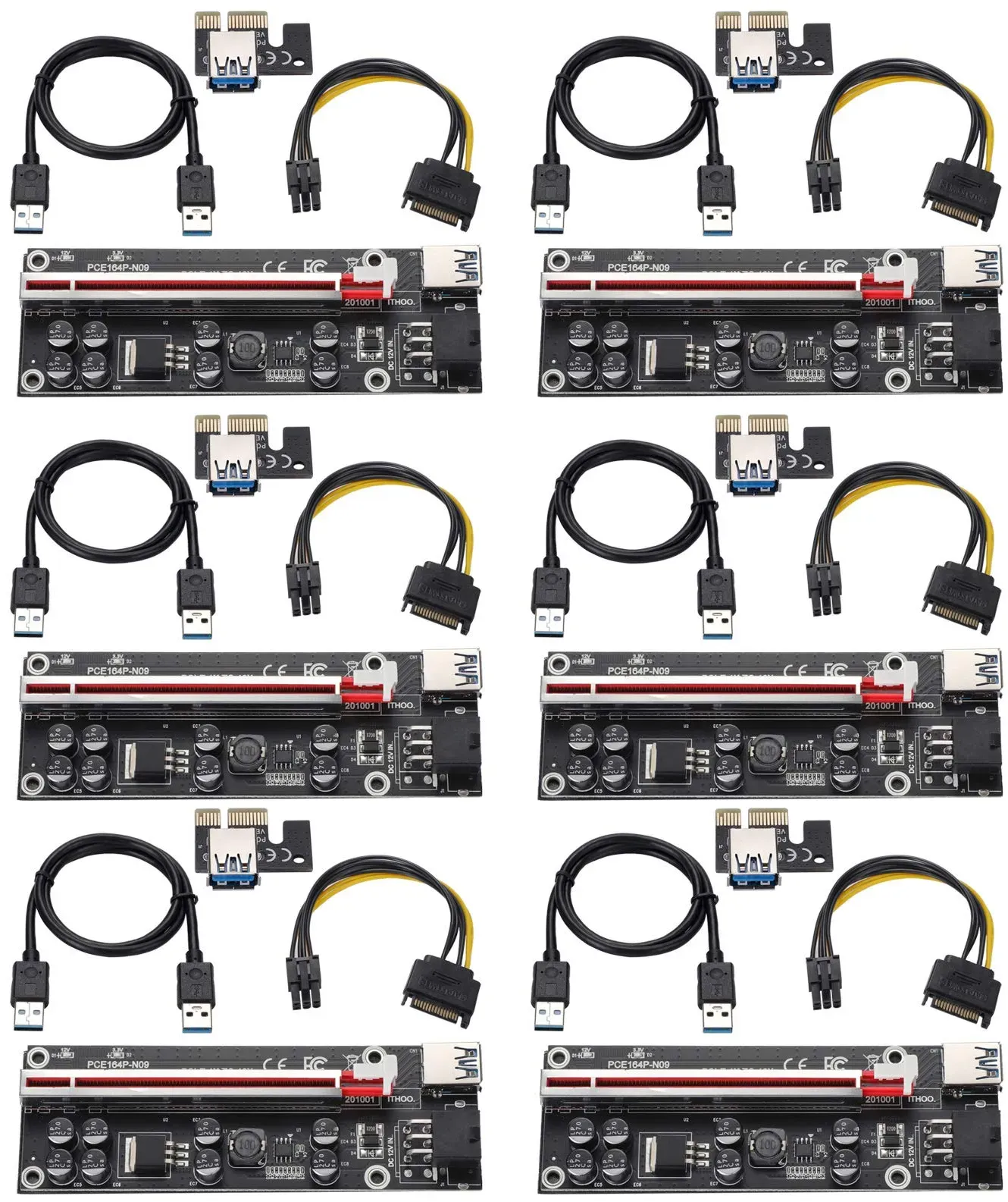 Auf Lager Versand durch AmazonMZHOU PCI-E 1x zu 16x Grafikkartenadapter, PCIE 16X Verlängerungskabel mit USB 3.0 Datenkabel, für Grafikkarten-Mining-Geräte ?6 Stück