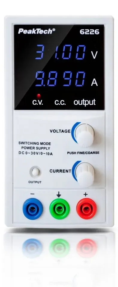 Auf Lager Versand durch AmazonPeakTech 6226 ? Labornetzteil 0-30V/ 0-10A, Regelbar, Labornetzgerät DC mit Blauer 4-Stelliger Anzeige, Stabilisiertes Schaltnetzteil, Überlast- und Kurzschlussfest, schmale Bauform