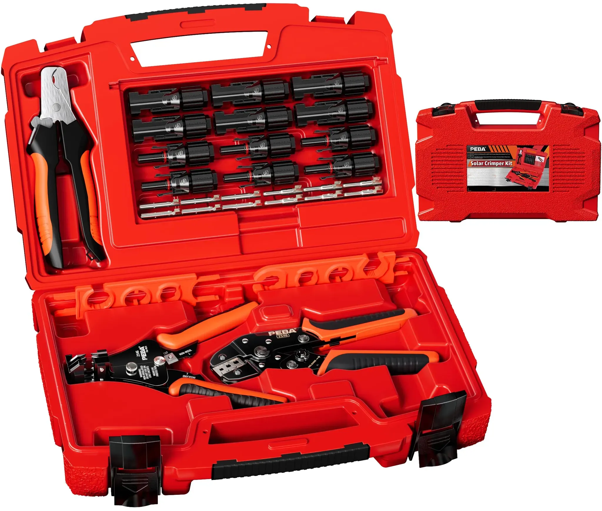 Kategorie: Zangen - PEBA - Crimpzange Stecker Set: Inkl. PEBA 2030M Crimpzangen, Abisolierzange, 28 Arten unterschiedlichen Dupont und JST modelle steckverbinder, bleibt kein Crimp-Projekt unvollendet. In diesem professionellen Set ist für jeden immer der richtige und passende Verbindungsstecker dabei. Mehrere Crimpkavitäten: Crimpzangen verfügt über 5 doppelte Crimpstationen, die gleichzeitig den Draht und die Isolierung in einem Arbeitsgang crimpen. Für 0,03-0,5mm2/AWG 32-20 Drähte. PEBA 2030M erleichtert das Crimpen von Mikrosteckverbindern im Raster von 2,0 bis 3,0 mm mit nur einer Zange. Miniaturstecker Crimper: Gleichbleibend hohe Crimpqualität dank EDM-Schneidebacken, Ratschenfunktion und professionelles Crimpgesenk für felsenfestes Präzisionscrimpen bei jeder Anwendung. Das Crimpwerkzeug von PEBA sorgt für eine gleichbleibend hohe Leistung und optimiert Ihren Arbeitsablauf, um Zeit und Mühe zu sparen. Material: Das Steckverbindergehäuse verwendet Isoliermaterial, um Sicherheit und keine Leckage zu gewährleisten. Der Crimping Pin besteht aus hochwertigem vernickeltem Metall, das eine hohe Verdrahtungssicherheit bietet und nicht ausläuft, rostfrei und oxidationsbeständig ist. Es bleibt auch nach längerem Gebrauch intakt. Ein Echter Allrounder: Crimpzange ist in der Lage verschiedene Arten zu verpressen, z.B. JST-PH 2,0, Dupont 2,54 mm, JST(XH/SYP/SM 2,5mm,PH 2,0mm, RE 2,54mm), KF2510, Molex (KK 254 + Micro-Fit 3,0 mm), TE EI-Serie, D-SUB und Futaba Servo Anschluss ... Ein Premium-Solar Crimpzangen Set, das mit einer Vielzahl von Zubehörteilen wie Kabelsteckern, Abisolierzange und Kabelschneider in einem Werkzeugkasten geliefert wird. ![]() ![]() PEBA Solar Crimpzange Set für 1.5-6.0mm2 Solarpanel PV Kabel, Inkl. Kabelstecker Stecker,Abisolierzange, Kabelschneider, Schraubenschlüssel für Solar Stecker und Top-Werkzeugkasten
