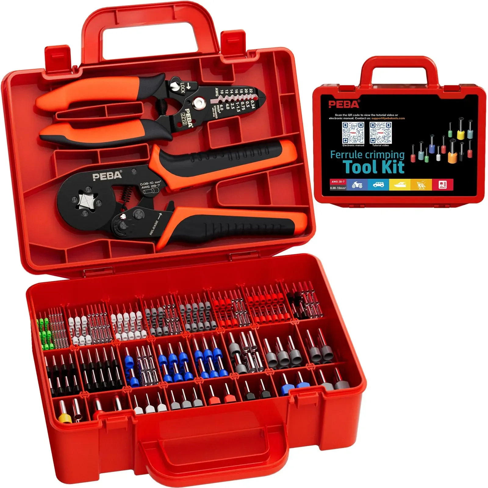Kategorie: Zangen - PEBA - Komplettes Crimp-Set Alles in einer Box: Enthält Crimpzange, Abisolierzange, 20 Sets 2-polige wasserdichte KFZ-Steckverbinder, 100 männliche/weibliche Pins, 3 Größen Kabeldichtungen und 2 Abziehwerkzeuge. Praktisches All-in-One-Werkzeugset für schnelle Reparaturen und sichere Kabelverbindungen im Automotive- und DIY-Bereich. Profi-Crimpzange mit Ratschenmechanismus: Die PEBA-Crimpzange bietet dank Ratschenfunktion, einstellbarer Crimpkraft und Schnelllösehebel gleichbleibend hohe Crimp-Qualität bei minimalem Kraftaufwand. Geeignet für Kabel AWG 22-14 (0,34 2,5 mm2) sowie AMP SUPERSEAL 1.5 SERIES-Steckverbinder. Wasserdicht & Langlebig (IP67): Die KFZ-Stecker bestehen aus robustem PA66-Nylon und sind wasserdicht nach IP67. Nennwerte: 14A / 24V. Beständig gegen Hitze, Abrieb und wiederholtes Stecken. Ideal für den Einsatz in Autos, Motorrädern, Booten, LKWs sowie marinen Umgebungen. Einfache Anwendung mit Video- & E-Manual: Zusätzlich zu den Werkzeugen erhalten Sie eine digitale Bedienungsanleitung und Video-Tutorials, die jeden Schritt von Abisolieren bis Crimpen verständlich erklären. Perfekt für Anfänger und Profis so gelingt jede Kabelverbindung beim ersten Mal. Hochwertiges & Stoßfestes Aufbewahrungsgehäuse: Das Set wird in einem stabilen, verschleißfesten Kunststoffkoffer geliefert. Das robuste Gehäuse schützt Werkzeuge und Steckverbinder zuverlässig vor Staub, Stößen und Beschädigungen ideal für Werkstatt, Garage oder mobilen Einsatz. - ... Ein umfassendes Aderendhülsen-Set mit Crimpzange und Abisolierzange, das eine breite Palette an Aderendhülsen für professionelle Anwendungen bietet. ![]() ![]() PEBA Aderendhülsen Set mit Crimpzangen für 0,08-10 mm2 mit 33 Arten Aderendhülsen/Twin Hülsen und Abisolierzange, Aderendhülsenzange Crimpzange Set, Vierkant Presszange für Draht elektroinstallation