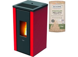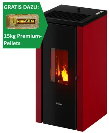 lieferbar in 2 WochenPegaso Pelletofen VERA, 7 kW, Zeitbrand, Stahl rot