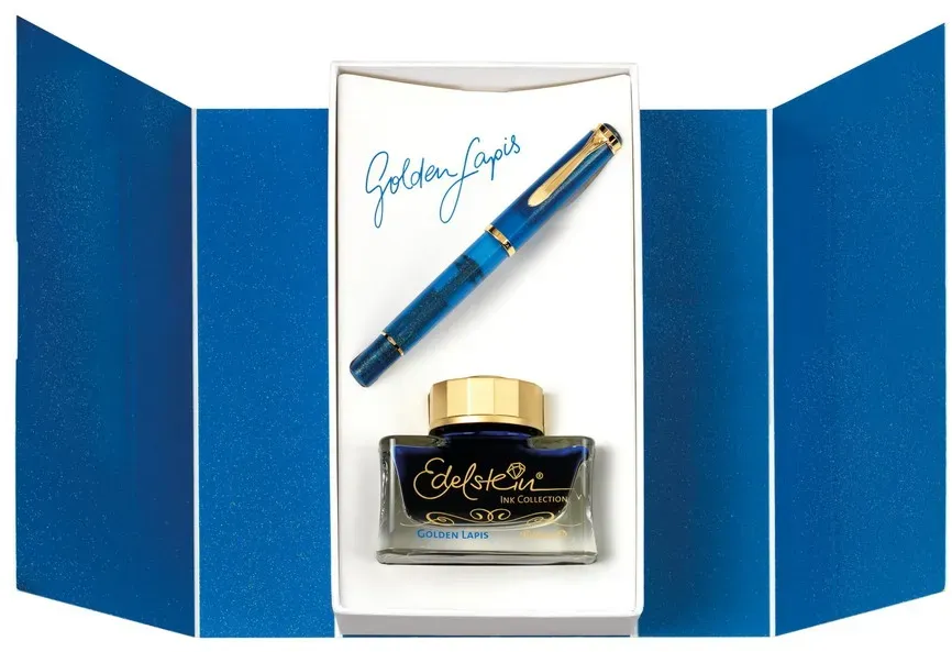 Kategorie: Füller - Pelikan - GTIN:4012700826084 - Tintenfass Golden Lapis und M200 Classic Füllfederhalter in Golden Lapis M im Set von Pelikan - Special Edition Der Edelstein Golden Lapis ist ein Symbol für innere Ruhe und emotionale Ausgeglichenheit. Einst galt er als Edelstein für Könige und wurde mit Stärke, Weisheit und Schutz vor negativen Einflüssen verbunden. Das faszinierende Blau des M200 Golden Lapis nimmt den goldenen Schimmer auf und verzaubert mit einer schimmernden Präsenz. Gleichzeitig gibt die samtmatttransparente Materialkomposition den Blick auf das Innere, die Kolbenmechanik, frei. Werden die golden-schimmernden Elemente in der Tinte vor dem Befüllen aufgeschüttelt, verleihen sie so dem Geschriebenen immer wieder changierende Farbexpressionen. Die fein verarbeitete Edelstahlfeder und die Zierelemente sind hochwertig in 24kt vergoldet. Die Edelstein Ink hat eine einzigartige Rezeptur, die für ein besonders weiches Schreibgefühl sorgt und gleichzeitig das Innere des Füllhalters pflegt. Die brillanten Farben entsprechen den Farbgebungen weltweit berühmter Edelsteine. Einmal im Jahr wird eine Farbe des Jahres auf den Markt gebracht. Limitiert auf nur ein Kalenderjahr. Ein Flakon Edelstein Ink Tinte enthält 50ml. Bitte beachten Sie, dass der Füllhalter bei Verwendung der Tinte regelmäßig durchgespült werden sollte, um eine Verstopfung des Tintenleiters zu vermeiden. Set mit Kolbenfüllhalter und Tintenfass Farbe: Golden Lapis Federstärke: M Edelstein Ink of ... ![]() ![]() Pelikan Set - Füller M200 eBay & Kugelschreiber K200 blau marmoriert - unbenutzt + Box