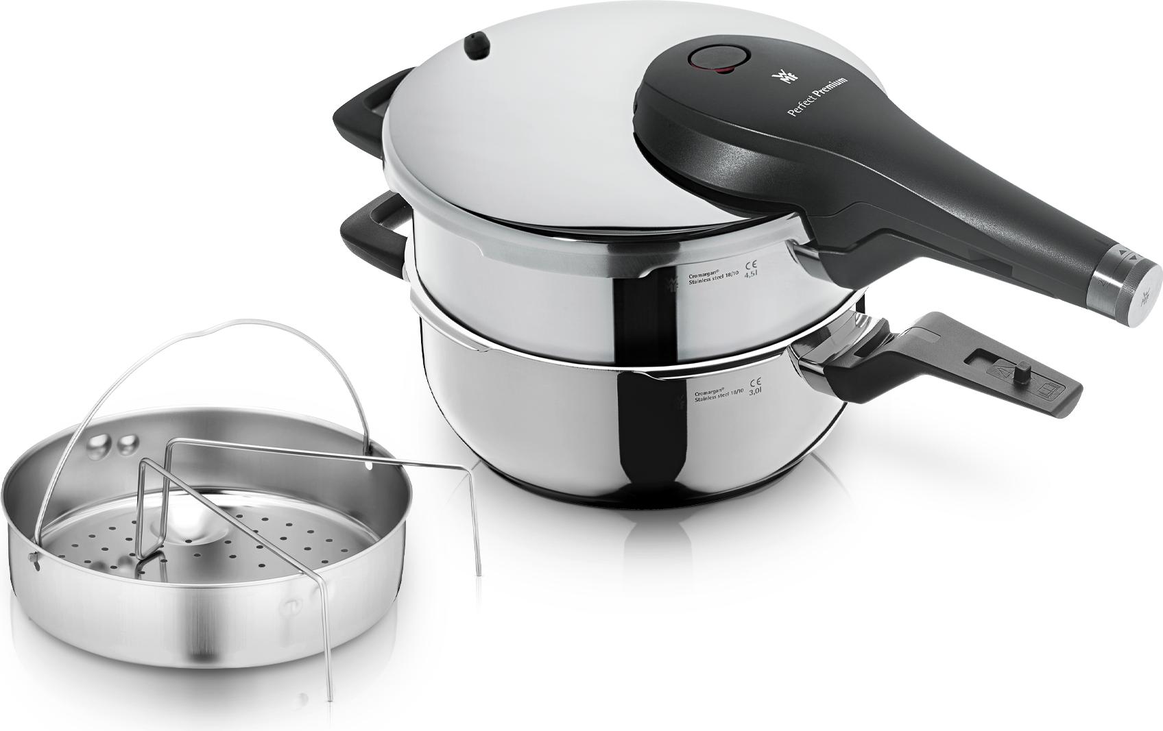 keine Angabe Nur noch 10 auf Lager (mehr ist unterwegs).WMF Perfect Premium One Pot Schnellkochtopf Set Induktion 3-teilig, Dampfkochtopf 4,5l + 3l mit Einsatz-Set, Kochtopf groß, Cromargan Edelstahl, 2 Kochstufen, Drehknopf