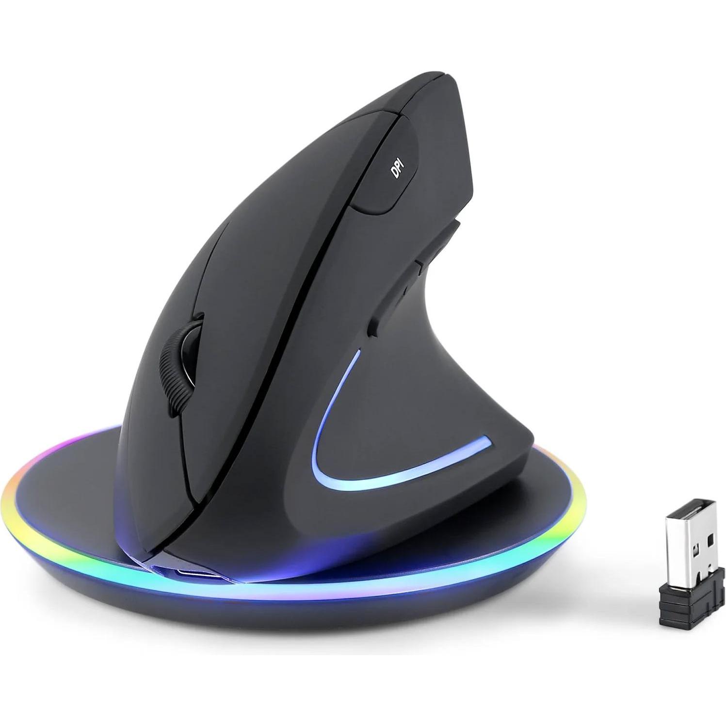 Auf Lager Versand durch AmazonPerixx PERIMICE-713R Wireless Rechargeable Vertical Mouse - Duo Wired and Wireless Charging Feature - 6 Buttons Design - Black - Right-Handed Design