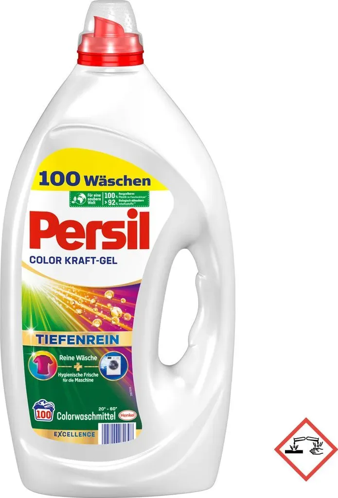 3 Händlerangebote bei billiger.de - Kategorie: Waschmittel - Persil - €¢ Colorwaschmittel geeignet für Buntwäsche und farbige Textilien €¢ Energiesparend durch niedrige Waschtemperaturen ab 20°C €¢ Schützt und pflegt die Fasern Ihrer Wäsche vor Flusenbildung €¢ Strahlend leuchtende Farben und Anti-Grau-Formel €¢ Kraftvolle Fleckenentfernung durch Tiefenrein Technologie für reine Wäsche und hygienische Frische für die Maschine €¢ Verpackung aus 100 % recycelbaren Papierfasern ---------------------------------------- Merkmale: Ausführung: Pulver geeignet für: Buntwäsche Waschladungen: 90 ---------------------------------------- weitere Produktinformationen: Inhalt: 90WL, ---------------------------------------- Warnhinweise: Signalwort: Achtung H319: Verursacht schwere Augenreizung. Hinweis: Waschmittel vorsichtig verwenden. Vor Gebrauch stets Etikett und Produktinformationen lesen. ----------------------------------------,Waschmittel,Reiniger,, - GTIN:4015200034959 Dieses Gel-Waschmittel ist eine beliebte Wahl für eine große Menge Colorwaschmittel zu einem attraktiven Preis. ![]() ![]() Persil Colorwaschmittel Gel 4500 ml 100 WL