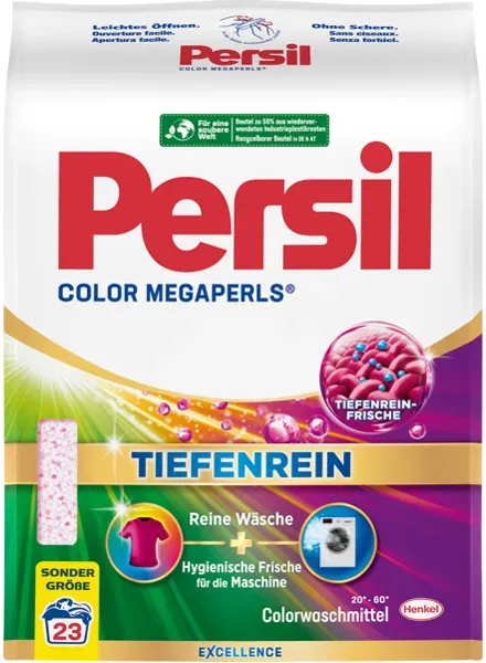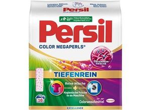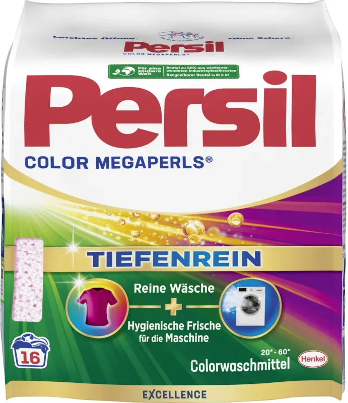 Persil - EAN: 4015200035024 - Waschmittel.. PERSIL Color Megaperls Reine Wäsche und hygienische Frische für die Maschine. Das PERSIL Color Waschmittel vereint strahlend reine Wäsche mit hygienischer Frische für die Maschine. Die einzigartige Formel mit Tiefenrein-Frische dringt tief in die Fasern ein, um selbst die hartnäckigsten Flecken zu lösen und zu beseitigen. Gleichzeitig ist das leistungsstarke PERSIL Waschpulver mehr als nur ein Fleckenentferner für Kleidung: Unangenehme Gerüche, die aufgrund von Ablagerungen aus der Waschmaschine kommen können, werden wirksam bekämpft. Für eine saubere Welt Das PERSIL Waschpulver kommt in einem recycelbaren Beutel aus 50 % wiederverwendeten Industrieplastikresten. Bitte die Verpackung nach Gebrauch recyceln. Produktvorteile im Detail: Einzigartige Formel mit Tiefenrein-Frische dringt tief in die Fasern ein um Flecken zu bekämpfen Hygienische Frische für die Maschine Recycelbarer Beutel aus 50 % wiederverwendeten Industrieplastikresten Waschmittel ist auch effektiv bei voller Beladung Energiesparend bei niedrigen Temperaturen ab 20 C Dosierhilfe: Es sollte immer die Dosieranweisung auf der Verpackung geprüft werden. Die Dosieranweisung ist abhängig von der Größe der Waschmaschine, der Wasserhärte und dem Verschmutzungsgrad der Wäsche. Spartipps für Wasser, Energie, CO? und Geld:1. Vermeiden Sie ein Unterfüllen der Waschmaschine. 2. Dosieranweisungen beachten. 3. Bei niedriger Temperatur waschen. 4. Verpackung aufbewahren ... ![]() ![]() Persil Color-Megaperls Waschmittel, tiefenrein P16MC , 1,12 kg - Packung für ca. 16 Waschladungen