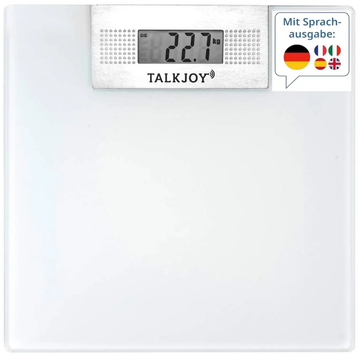 Kategorie: Personenwaagen - TalkJoy - GTIN:0728899433289 - Laute und deutliche Ansage des Gewichts nach Messung in 5 Sprachen: Deutsch, Englisch, Französisch, Spanisch oder Italienisch auswählbar; Waage Personen mit Einschränkungen und ohne. Großes digital LCD Display, leicht ablesbar, seniorentauglich, für Kinder oder Menschen mit Sehschwäche geeignet; Digitale Personenwaagen für sämtliche Zielgruppen, da zeitloses Design Breite Trittfläche und einfache Bedienung mit Step-on-Funktion (Messung beginnt bei Betreten) und Abschaltautomatik nach dem Absteigen. Sagt das Waggegewicht Personen an, bis 180kg. Präzise Waage mit exakten Messergebnissen und Sprachwiedergabe der Messwerte, weight scale der Extraklasse mit Potential zur Personenwaage digital Testsieger 2025 Maximal 180kg Körpergewicht auf 100 gram genau messbar. personen waage digital ist das lifestyle gadget in jedem Badezimmer und ein ideales Geburtstagsgeschenk - 37,90 Euro bei Amazon Marketplace Automotive - gefunden von billiger.de Die Beurer GS 39 ist eine digitale Personenwaage mit Sprachausgabe, die für ihre Qualität und Langlebigkeit bekannt ist. Manomano.d e