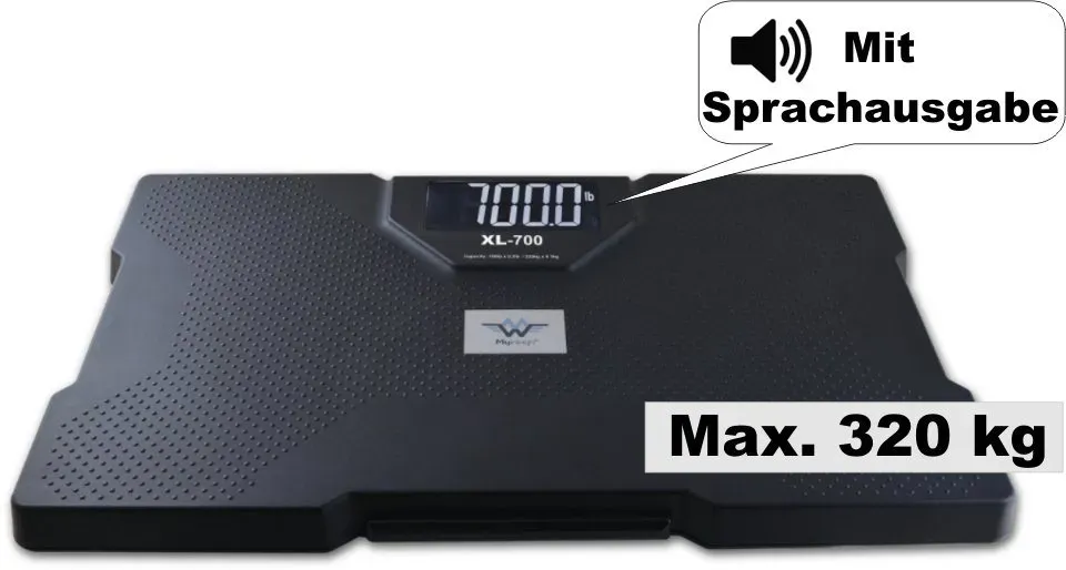 Bad Badaccessoires Personenwaagen Badezimmerausstattung - EAN:4211125744007 - Überblick Extra große Trittfläche Abschaltautomatik Vibration-On Beschreibung Exklusive Glaswaage mit Sprachfunktion in den Sprachen Deutsch, Englisch, Französisch, Spanisch und Russisch. Effektvolle blaue Beleuchtung für leichtes lesen der Werte. 4 Direkt-Speicherplätze: einfaches Speichern und Aufrufen des zuletzt gemessenen Wertes Eigenschaften Ziffernhöhe: 33 mm · Extra große Trittfläche: 280 x 340 mm · Lautstärke regelbar · Abschaltautomatik · Vibration-On mit Erschütterungstechnik · Umstellung von kg/lb/st* (nur im englischen Modus) Lieferumfang Waage · Batterien · Bedienungsanleitung - gefunden von Kelkoo Die My Weigh XL700 ist eine hochkapazitive digitale Personenwaage mit Sprachausgabe, ideal für Sportler oder übergewichtige Personen. ![]() ![]() My Weigh XL700 Digitale Personenwaage, hohe Kapazität, mit Sprachausgabe
