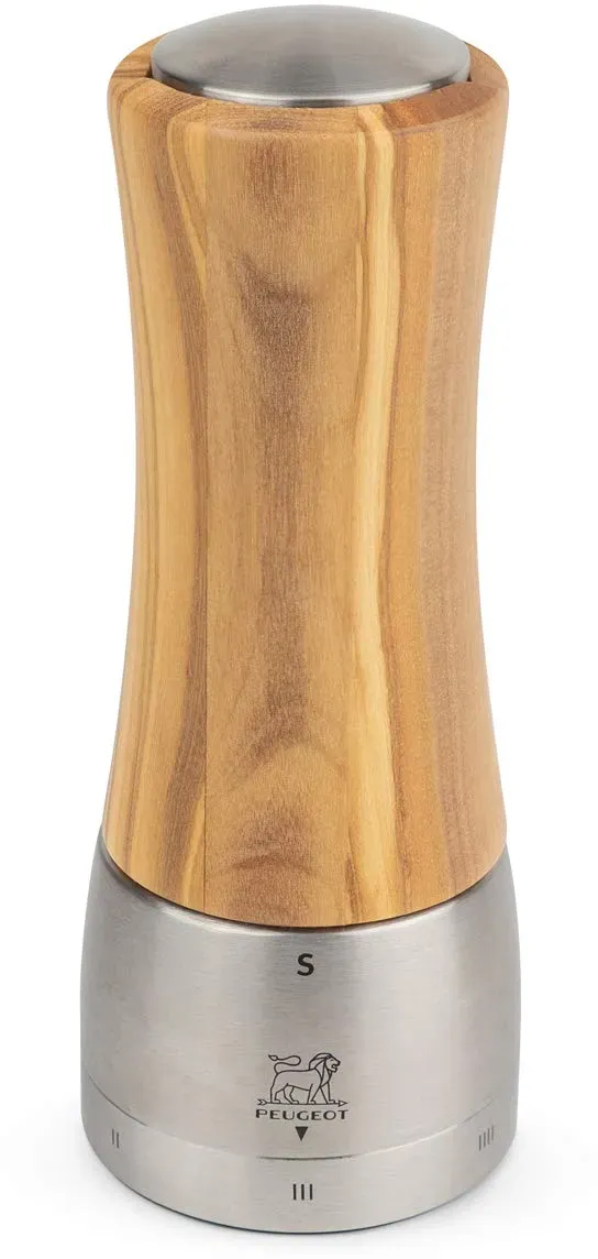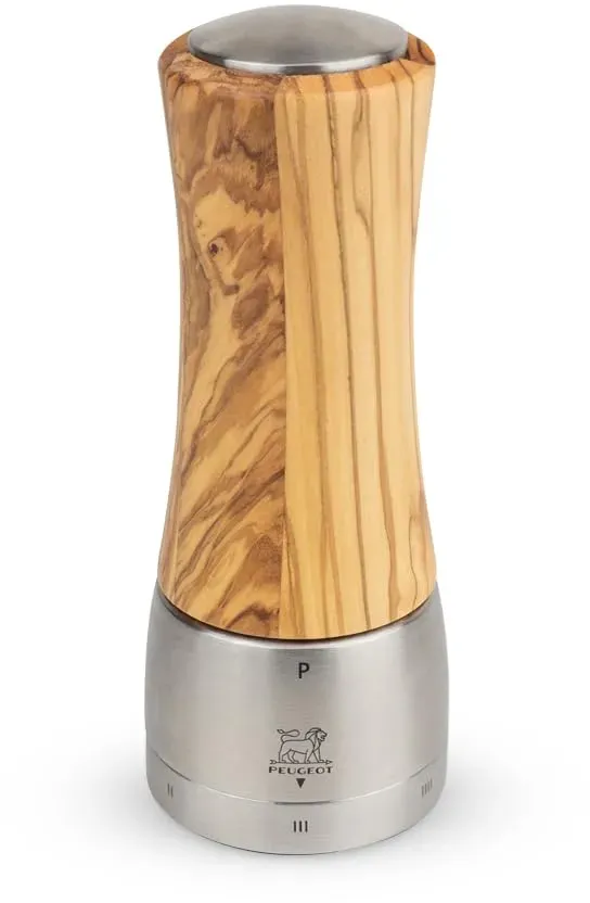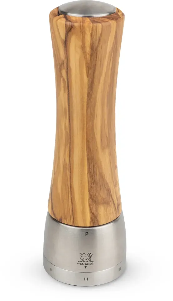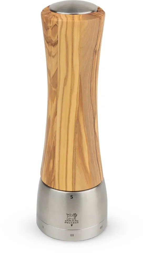 Kategorie: Salz- & Pfeffermühlen - Peugeot - GTIN:4006950036171 - Peugeot Madras Manuelle Salzmühle u'Select aus Olivenholz 21cm Die 21cm hohe manuelle Salzmühle Madras sorgt für ein perfektes Gleichgewicht zwischen dem sanften, warmen Olivenholz und dem kalten, robusten Edelstahl. Zusätzlich zu einem modernen Stil bietet die Salzmühle Madras aus Holz die Wahl des gewünschten Mahlgrades mit einer Hand, über das einfallsreiche u Select-Einstellsystem. Ihre Erfolgsgeschichte reicht bereits in das Jahr 1840 zurück; seitdem hat sich die Marke längst weltweit als feste Bezugsgröße bei Gourmets und Spitzenköchen etabliert. Die exklusiven Mühlen sind zu renommierten Ikonen der Tischkultur geworden. - 99,00 Euro bei grimm-daheim - gefunden von billiger.de Diese manuelle Pfeffermühle aus Olivenholz in 21 cm Höhe ist eine hochwertige und langlebige Option. ![]() ![]() Peugeot Madras Manuelle Pfeffermühle u'Select aus Olivenholz 21cm