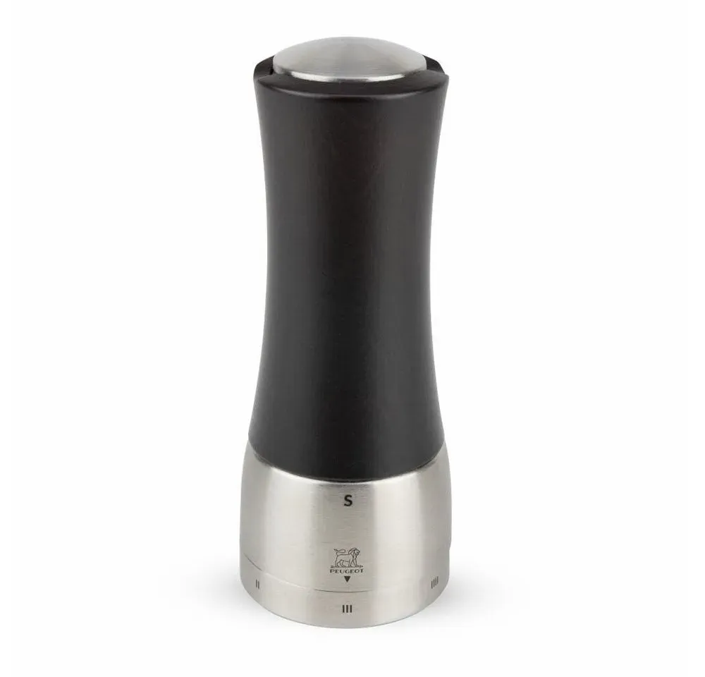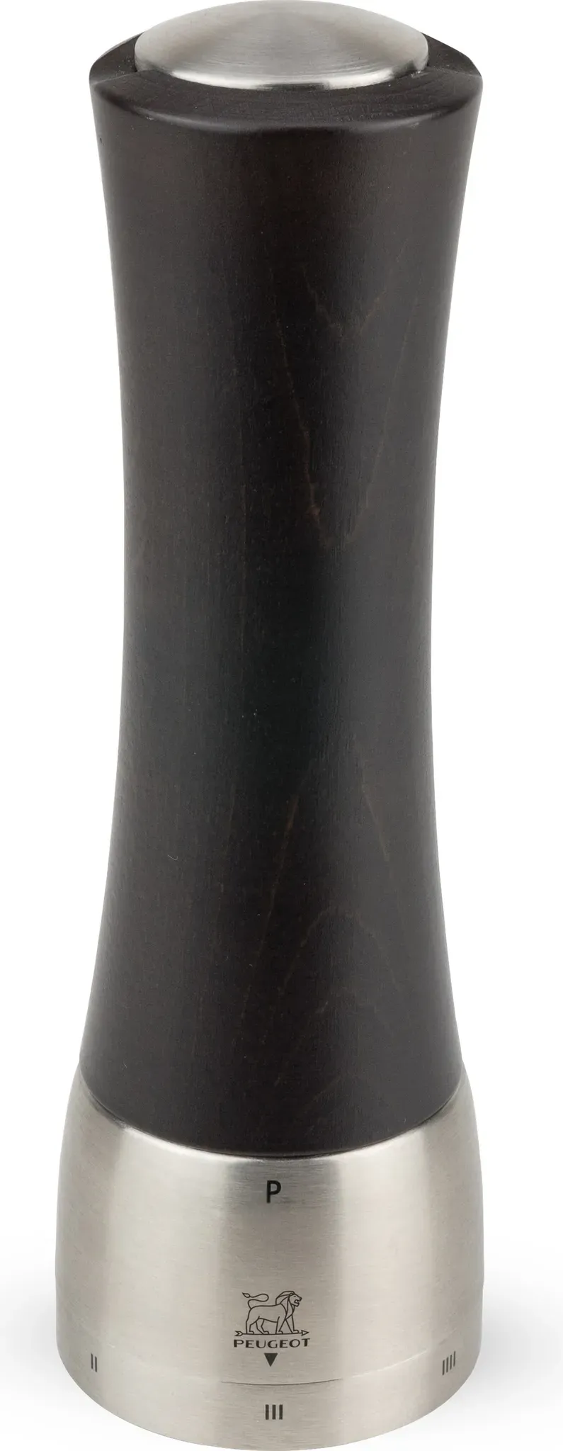 Kategorie: Salz- & Pfeffermühlen - Peugeot - GTIN:4006950047245 - DIE PEUGEOT-SALZMüHLE: Die Salzmühle Madras verbindet die Wärme von Holz mit der modernen Optik von Edelstahl. Ohne Mittelstab lässt sie sich leicht nachfüllen und bietet ein optimiertes Fassungsvermögen. Der magnetische Deckel und das klare Design machen sie zu einem praktischen und stilvollen Must-have. ZIRLION, INNOVATIVES MAHLWERK FüR TROCKENSALZ: Das Zirkonia-Mahlwerk Ihrer Mühle wurde speziell für das Mahlen von trockenen Salzkristallen unter 6 mm entwickelt. Es bietet eine einzigartige Mahlqualität, von puderfeinem Salz bis hin zu grobem Salz. Nicht für feuchtes Meersalz verwenden, auch nicht im getrockneten Zustand. NACHHALTIG & UMWELTFREUNDLICH: Auf das Mahlwerk dieser robusten Gewürzmühle wird eine von 2 n gewährt. Die Mühle wird in Frankreich aus heimischem PEFC-zertifiziertem Holz gefertigt. MAHLGRADEINSTELLUNG U'SELECT: Das u'Select-System bietet sechs voreingestellte Mahlgrade von puderfeinem Salz bis hin zu grobem Salz, damit Sie alle feinen Nuancen ganz nach Lust und Laune genießen können. Der Mahlgrad lässt sich über den Ring an der Basis der Mühle individuell einstellen. DER NAME PEUGEOT STEHT FüR AUSGEZEICHNETE QUALITäT: Der Name Peugeot verkörpert französisches Know-how und wird wegen seiner Pfeffer-, Salz-, Gewürz- und Kaffeemühlen, seiner Auflaufformen aus Keramik und seinem Angebot an Weinzubehör seit über 20 n gleichermaßen von Spitzenköchen, Gourmets und Hobbyköchen geschätzt. - ... Diese 21 cm hohe Pfeffermühle bietet eine größere Kapazität und ist ideal für häufigen Gebrauch. ![]() ![]() Peugeot Madras Pfeffermühle 21 cm
