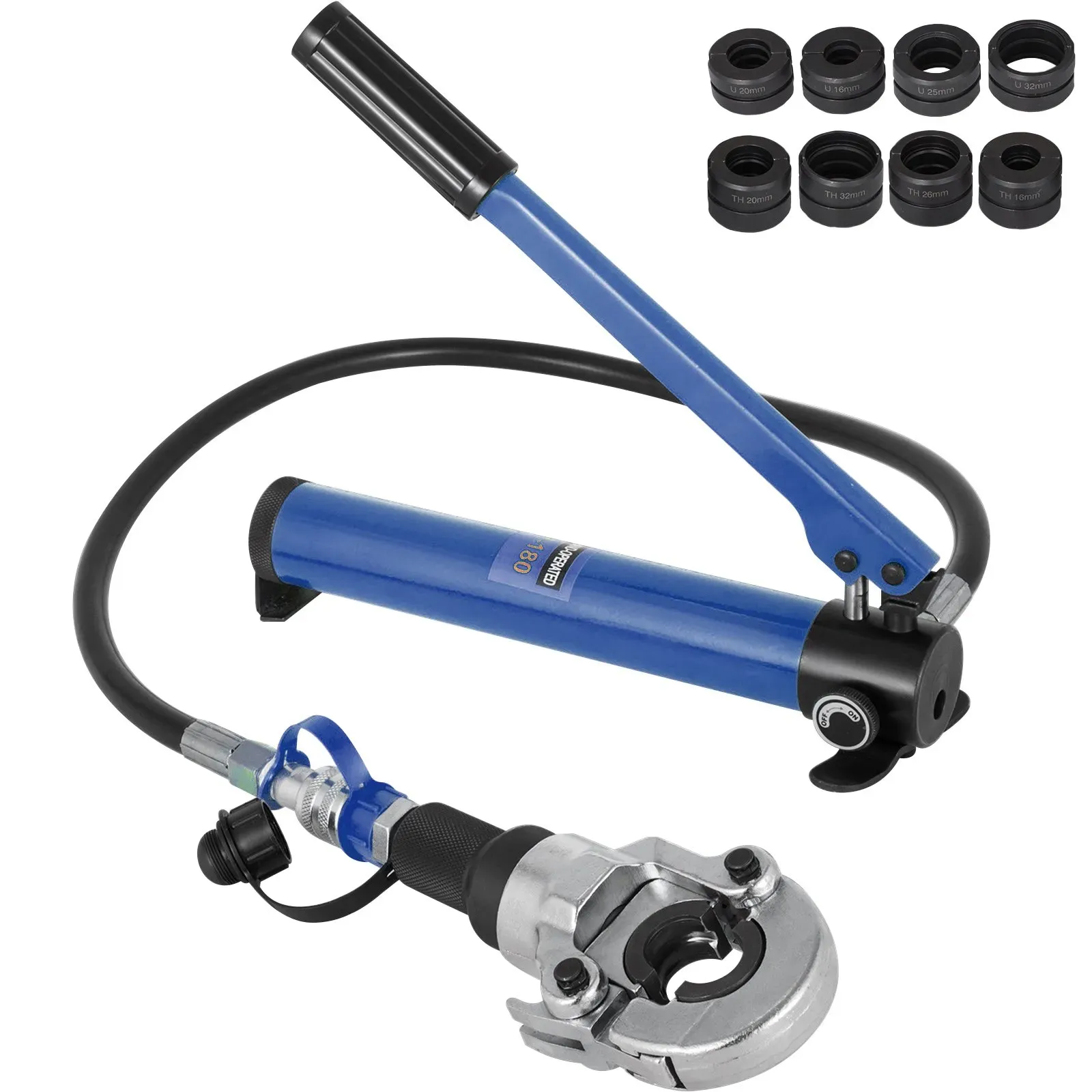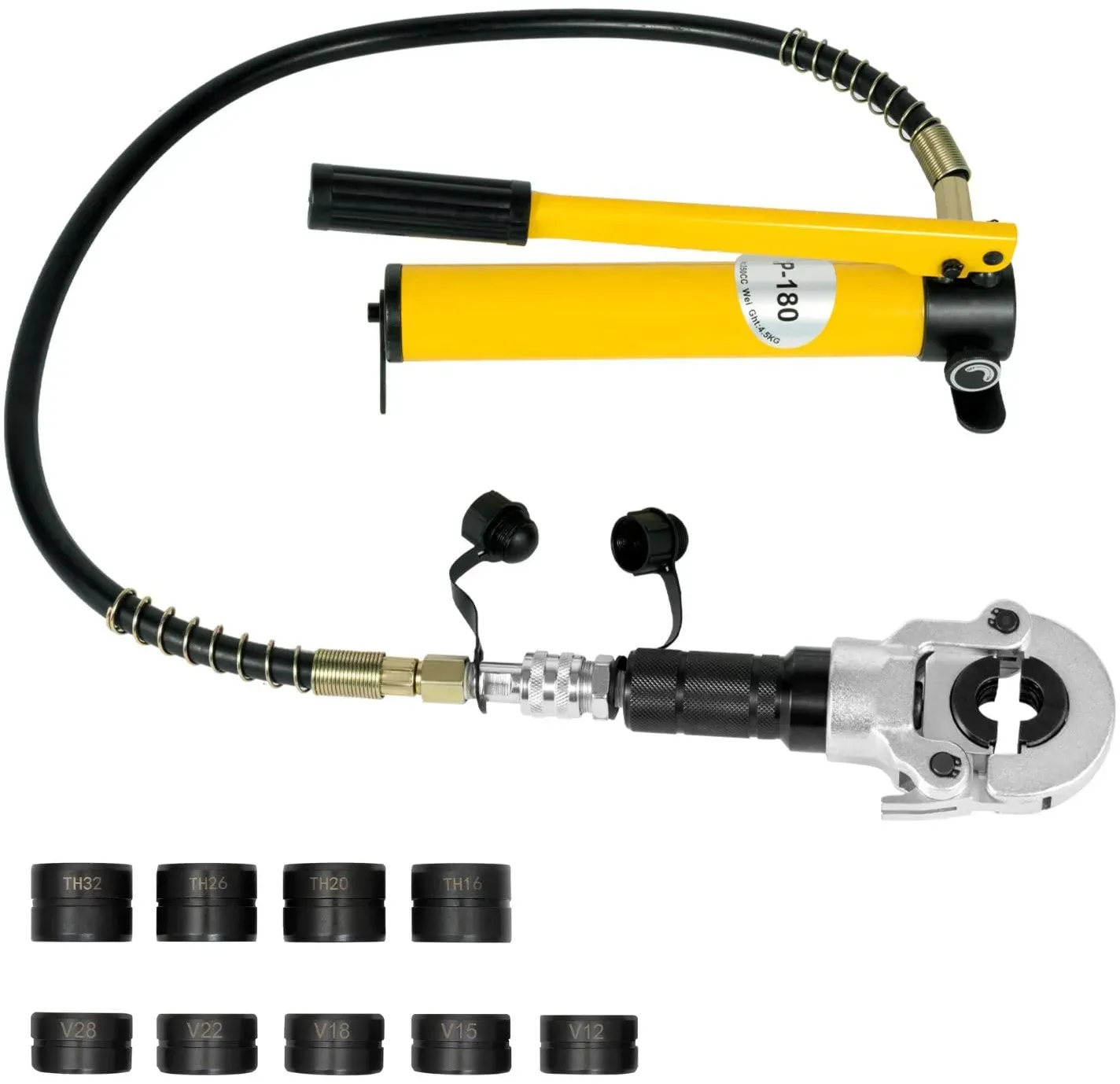 Auf Lager Versand durch AmazonVEVOR Presszange Hydraulik, multifunktionales Presswerkzeug mit TH16 TH20 TH26 TH32 Backen, Crimpzange für PEX- & Aluminium-Kunststoff-Rohre sowie V12 V15 V18 V22 V28 Backen für Edelstahlrohre