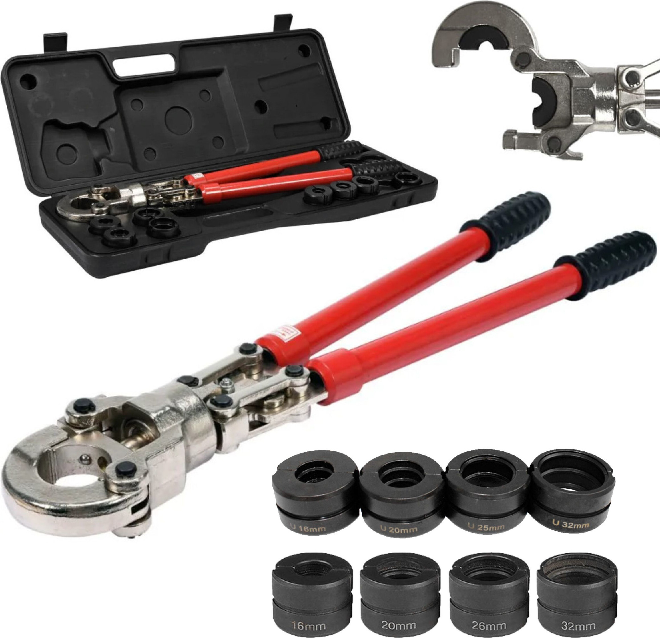 EAN: 5900378901068 - Die PEX-Presszange dient zum Verbinden von PEX-Kunststoffrohren mit speziellen Klemmen. Sie werden häufig in Sanitäranlagen, Fußbodenheizungssystemen sowie in Heiz- und Kühlsystemen eingesetzt. Matrize für PEX-Presszange sind ebenfalls erhältlich.Technische Daten:Manuelle U TH-Profil 16-32mm Gewicht:Kunststoffkoffer 2000gFarbe: schwarz, rotMaterial: geschmiedeter Werkzeugstahl, gummierter Griff Arbeitsbereich: 16 - 32 mm Anwendung:PEX-Rohre, PB-Rohre, Aluminiumrohre, Kupferrohrverschraubung, Kupfersteckverbinderverbindungen Lieferumfang: 1x Rohrpresszange, KunststoffkofferDruck:8 Tonnen 360 Schwenkbarer Kopf - bei kaufland.de - aus Yadore Produktdaten Diese HeinaTond Hydraulische Presszange ist eine leistungsstarke Option mit 6T Presskraft und 9 Matrizen für verschiedene Rohre. ![]() ![]() HeinaTond 6T Hydraulische Presszange V/TH Rohrpresse Kupferrohr Presszange Mit 9 Matrizen Und 360° Drehbarem Kopf Hydraulisches Presswerkzeug für PEX-Rohre, Aluminiumrohre, Edelstahlrohre