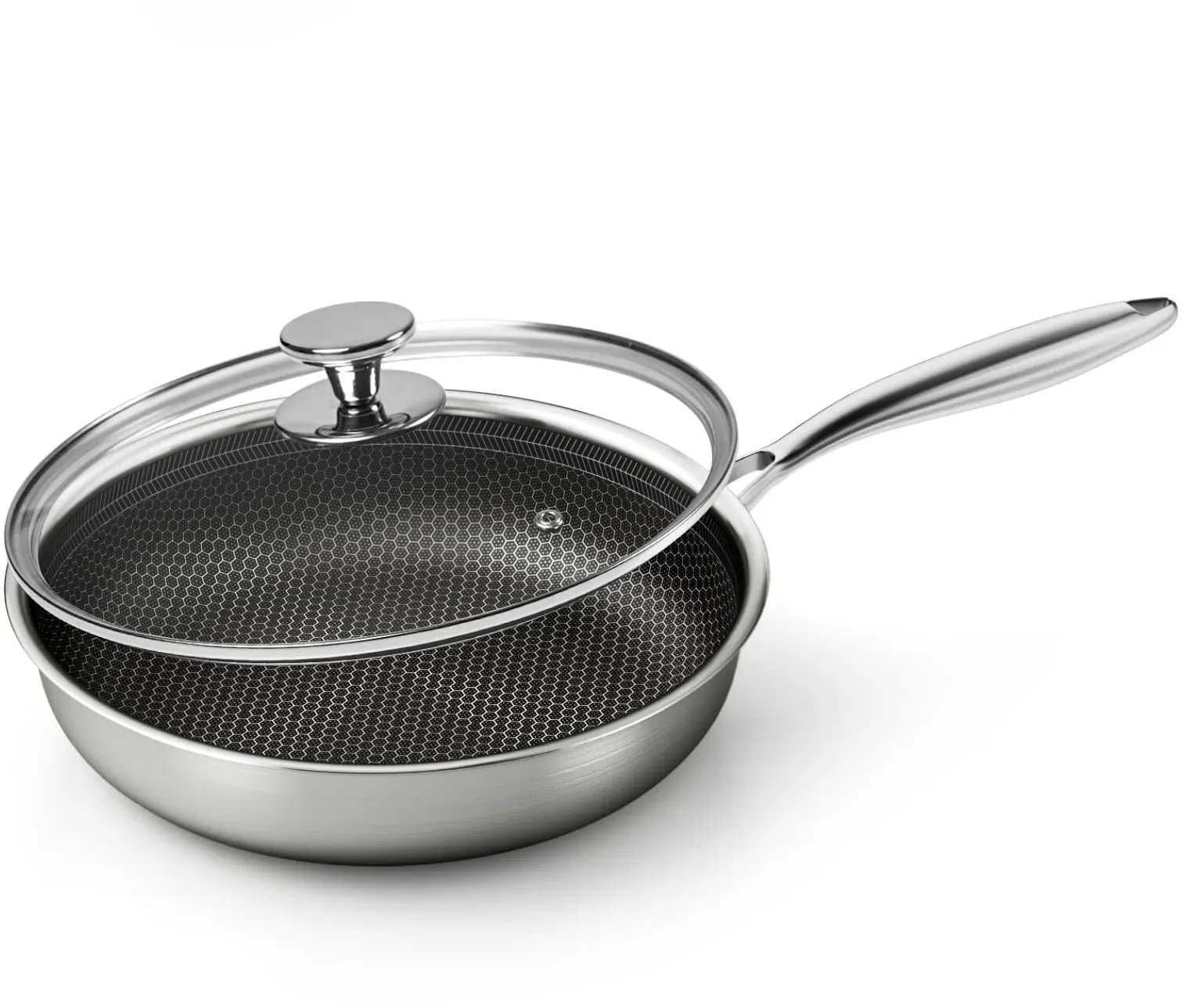 Zustand: Neu - Brat- & Schmorpfannen - Tefal - G61237 - EAN: 3168430335004 - Unbedenkliche Titanium 2x Antihaftversiegelung entwickelt für die intensive tägliche Nutzung: Dank ihrer hochverdichteten Grundschichten bietet diese Versiegelung eine Antihaftleistung, die bis zu 2 mal länger währt als die der Tefal Standard-Antihaftversiegelung Inklusive Temperaturanzeiger: Die verbesserte Thermo-Signal-Technologie färbt sich einheitlich dunkelrot, sobald die Schmorpfanne optimal vorgewärmt und bratbereit ist; für perfekte Bratergebnisse jeden Tag Durch die extragroße Fläche und den starken Boden ermöglicht Thermo-Fusion Integral ein schnelles Erwärmen und eine homogene Wärmeverteilung in der Pfanne, für gleichmäßig gegarte und ideal zubereitete Ergebnisse Vielseitiges Kochen: Die Schmorpfanne ist für alle Herdarten geeignet, einschließlich Induktion (Gas, Elektro, Keramik, Induktion), sowie backofengeeignet bis max. 175°C Besonders einfache Reinigung: Die Trattoria Pro Schmorpfanne ist spülmaschinengeeignet (für eine längere Lebensdauer empfehlen wir jedoch eine Reinigung per Hand) - bei Amazon.de Die Innerwell Profi Antihaft Pfanne aus Edelstahl bietet eine kratzfeste Wabenversiegelung und ist spülmaschinen- sowie backofenfest. ![]() ![]() Innerwell Profi Antihaft Pfanne Edelstahl 28 cm, Induktion Pfanne mit Deckel, kratzfeste Wabenversiegelung, Universal Bratpfanne, backofenfest, PFOA-frei, spülmaschinengeeignet