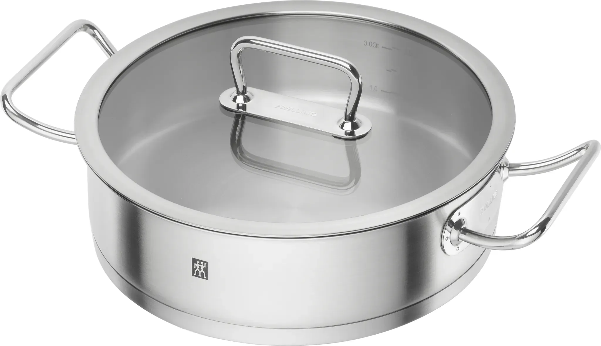 Kategorie: Pfannen - Zwilling - GTIN:4009839530456 - Sie sorgt für komfortables Arbeiten in der Küche und ist äußerst langlebig - die Sautierpfanne mit zwei Griffen und Deckel ist sowohl im Alltag als auch bei der Zubereitung exquisiter Mittag- und Abendessen sehr nützlich. Vorteile: Der mehrschichtige SIGMA Classic+ Boden heizt sofort auf, verteilt die Wärme gleichmäßig und speichert sie lange. Der Rand ist breit und das Ausgießen des Pfanneninhalts ist sehr bequem. Auf der Innenseite befindet sich eine praktische Skala. Die Griffe bleiben lange Zeit kühl. Ein transparenter Deckel ist ebenfalls im Lieferumfang enthalten. Schicksal: Geeignet für alle Herdarten, einschließlich Induktion. Die Pfanne kann auch im Backofen verwendet werden - bis zu 200 C. Materialien: Die Pfanne ist aus rostfreiem Stahl und der Deckel ist teilweise aus Glas. Gut zu wissen! Auf die Pfanne gibt es 3 Hersteller . Spülmaschinentauglich. - 142,40 Euro bei Formadore - gefunden von billiger.de Das Tefal Jamie Oliver Pfannen-Set bietet eine vielseitige Auswahl an Pfannen, darunter eine 28 cm Wokpfanne mit Deckel, ideal für Großhaushalte. ![]() ![]() Tefal E30 Jamie Oliver Pfannen-Set Induktion 9 tlg -SET19- Schmorpfanne mit Deckel 25 cm , Wok mit Deckel 28 cm, Pfanne 28cm, 24cm, 20cm, IDEAL Fü...
