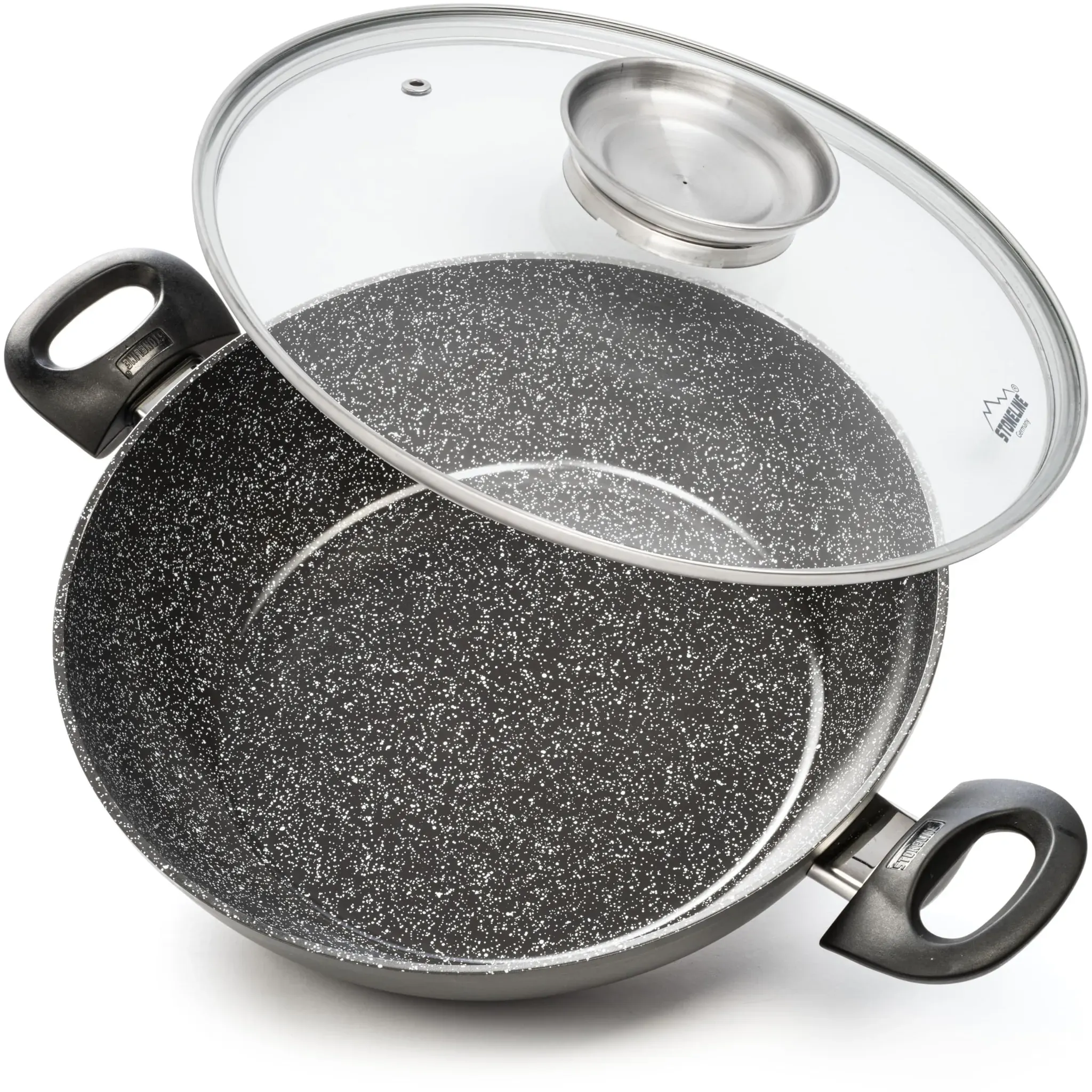 Kategorie: Pfannen - Westinghouse - GTIN:4895218315741 - LEICHT & SCHNELL ERHITZT: Gegossenes Aluminium erhitzt sich 3x schneller als gegossenes Eisen und wiegt auch nur halb so viel. Die Dichte von Aluminium macht die Top extrem leicht und gleichzeitig robust perfekt für einen einfachen Umgang in der Küche! PFOA-FREIE QUANTANIUM-BESCHICHTUNG: Unsere mehrschichtige, wasserbasierte Beschichtung enthält Titaniumpartikel, die sie extrem robust macht. Sie bleibt kratz- und splitterfrei, sodass Sie lange eine Freude an dieser hochwertigen Kochausrüstung haben. EINFACHE REINIGUNG MIT ANTIHAFT: Dank unserer einzigartigen Antihaftbeschichtung ist die Reinigung einfacher denn je; wischen Sie Reste einfach aus der Pfanne oder lassen Sie die Spülmaschine die Arbeit erledigen nie wieder lästiges Abwaschen! PERFEKT FüR ALLE HERDE & öFEN: Egal, ob Sie einen Gas-, Induktions- oder Keramikherd haben, mit dieser Topf ist alles möglich. Sie können sie sogar für Aufläufe direkt in den Ofen stellen, bevor Sie sie zum Servieren auf den Tisch platzieren. GRIFFE MIT SILIKONBESCHICHTUNG: Sie müssen nie wieder zum Handtuch greifen oder Angst haben, dass Sie sich die Hände verbrennen, denn unsere Performance Auflaufform hat Griffe mit Silikonbeschichtung. So können Sie Aufläufe sicher vom Herd in den Ofen oder direkt auf den Tisch stellen. - 61,95 Euro bei Amazon Marketplace Home - gefunden von billiger.de Die BALLARINI Salina Ceramic tiefe Pfanne ist eine gute Wahl für alle, die eine tiefe Pfanne mit Keramikbeschichtung suchen. ![]() ![]() BALLARINI Salina Ceramic tiefe Pfanne 28 cm mit Deckel, 2-tlg.