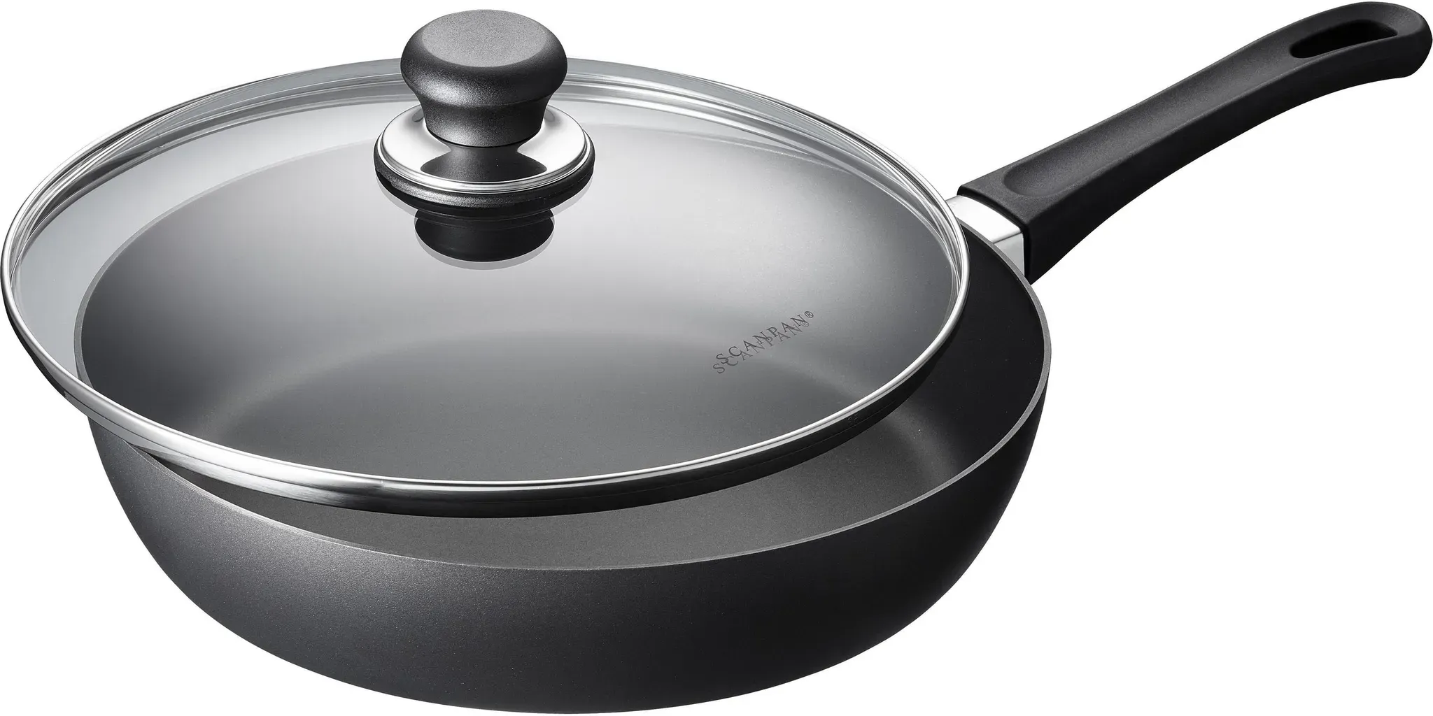 Kategorie: Pfannen - Tefal - GTIN:3168430295971 - Das 9-teilige Tefal Jamie Oliver Pfannen-Set überzeugt durch seine außergewöhnliche Vielseitigkeit: Mit drei Bratpfannen in 20, 24 und 28 cm, einer Schmorpfanne mit Deckel (25 cm) und einem Wok mit Deckel (28 cm) ist es ideal für große Haushalte oder ambitionierte Hobbyköche geeignet.Die Pfannen bestehen aus hochwertigem, pflegeleichtem 18/10 Edelstahl mit langlebiger 6-Lagen Tefal Titanium Excellence Antihaftbeschichtung. Diese ist besonders kratzfest, frei von schädlichen Stoffen wie , Blei und Cadmium, und ermöglicht fettarmes Braten ohne Anbrennen.Dank des integrierten Thermo-Spot Temperaturindikators weiß man genau, wann die Pfanne die optimale Brattemperatur erreicht hat für perfekte Bratergebnisse bei jedem Gericht.Alle Pfannen sind induktionsgeeignet und verteilen die Hitze dank des massiven, planen Bodens gleichmäßig. Der genietete Griff mit rutschfester Silikonummantelung sorgt für einen sicheren Halt, auch bei höheren Temperaturen. Ideal zum Braten von Fleisch, Fisch, Gemüse, Eierspeisen oder asiatischen Gerichten. PRODUKTBESCHREIBUNG Das Tefal E30 Jamie Oliver Pfannen-Set ist die ideale Lösung für ambitionierte Köche, große Haushalte und alle, die Wert auf Qualität, Vielseitigkeit und Langlebigkeit legen. Mit insgesamt neun Teilen darunter drei verschiedene Pfannen, ein Wok mit Deckel, eine Schmorpfanne mit Deckel sowie praktische Küchenhelfer bietet dieses Set die perfekte Grundlage für vielfältige ... Die Scanpan Schmorpfanne CLASSIC ist eine hochwertige Induktionspfanne mit exzellenter Antihaftbeschichtung. ![]() ![]() Scanpan Schmorpfanne CLASSIC 28 cm mit Deckel - Induktion, Pfanne + Kochtopf, Schwarz