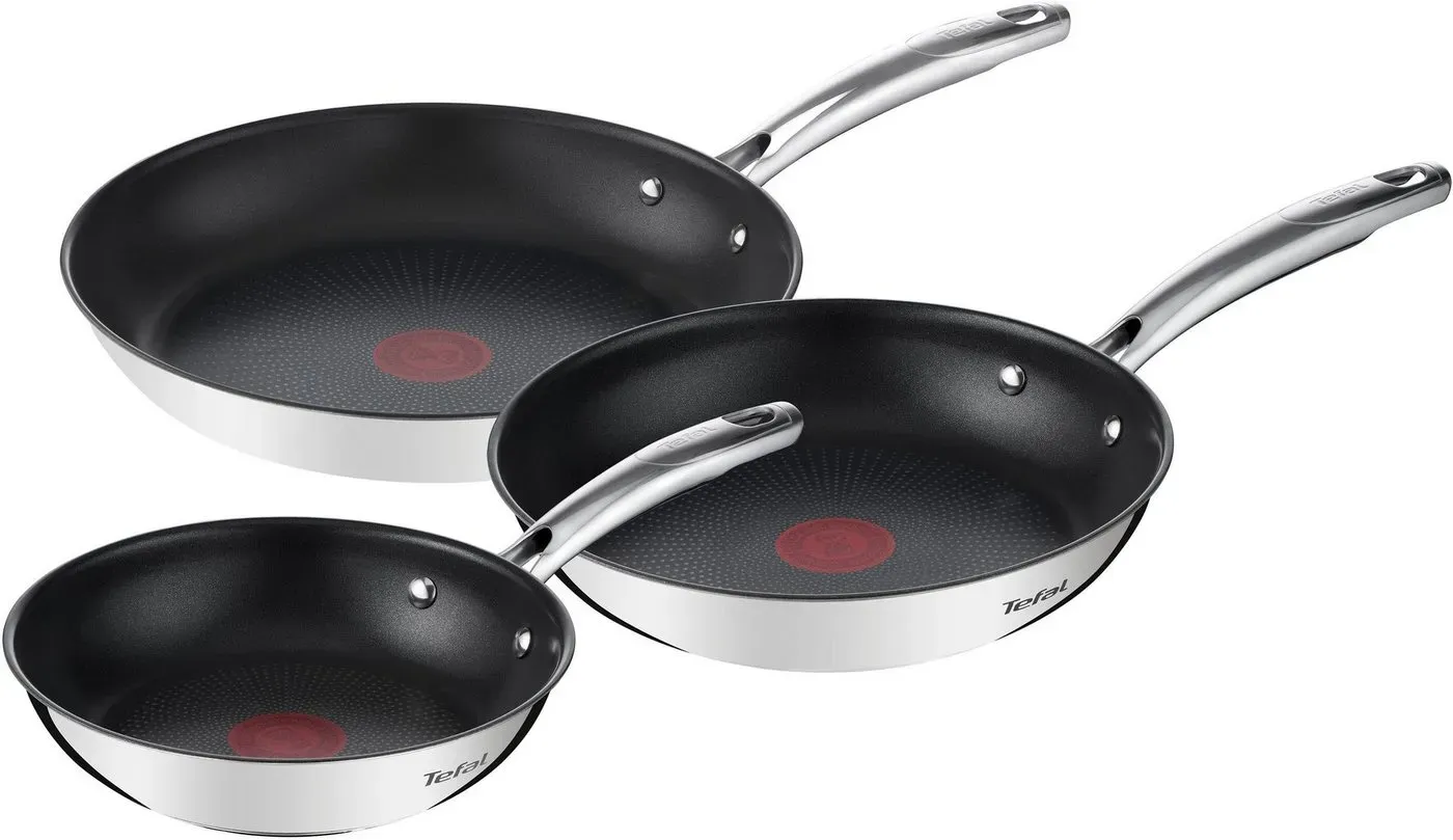lieferbar-in 1-2 Werktagen bei dirTefal Pfannen-Set Duetto+, langlebige Antihaftversiegelung, Thermo-Signal, Edelstahl (Set, 3-tlg., 3x Bratpfannen 20/24/28 cm), Edelstahl-Griff, Induktionspfanne, für aller Herdarten geeignet,G732S3 schwarz|silberfarben