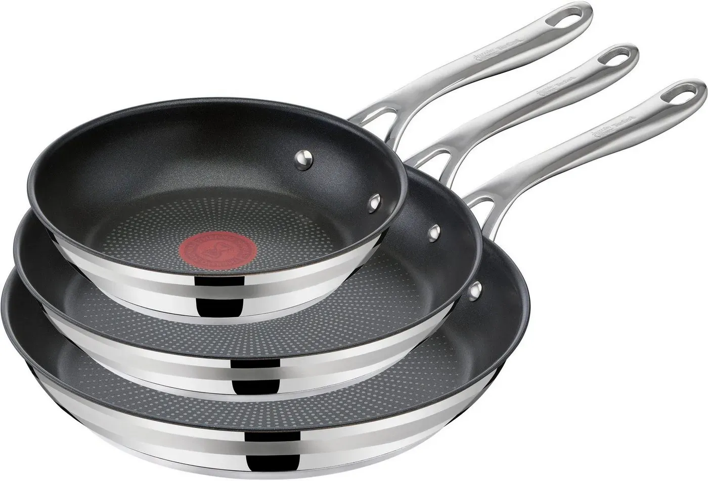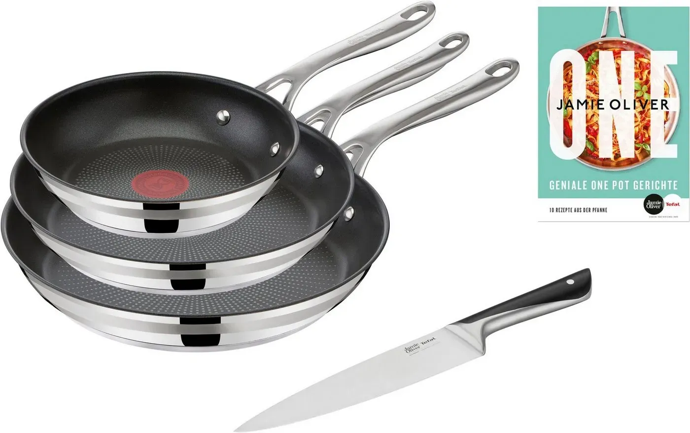 lieferbar-in 1-2 Werktagen bei dirTefal Pfannen-Set Jamie Oliver Cook Smart für alle Herdarten, Induktion, Thermo-Signal, Edelstahl (Set, 3-tlg., 3x Bratpfannen 20/24/28 cm), Antihaftversiegelung, lange Lebensdauer. ergonomischer Griff, E310S3 schwarz|silberfarben