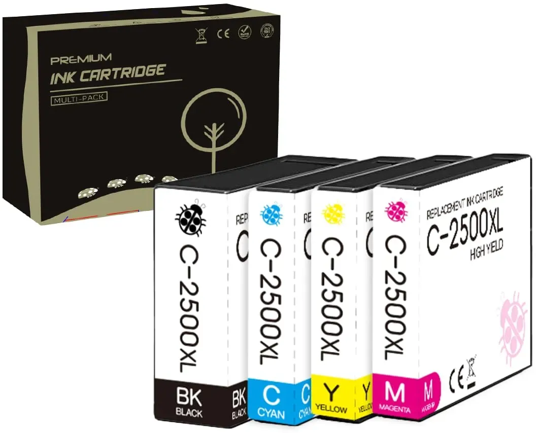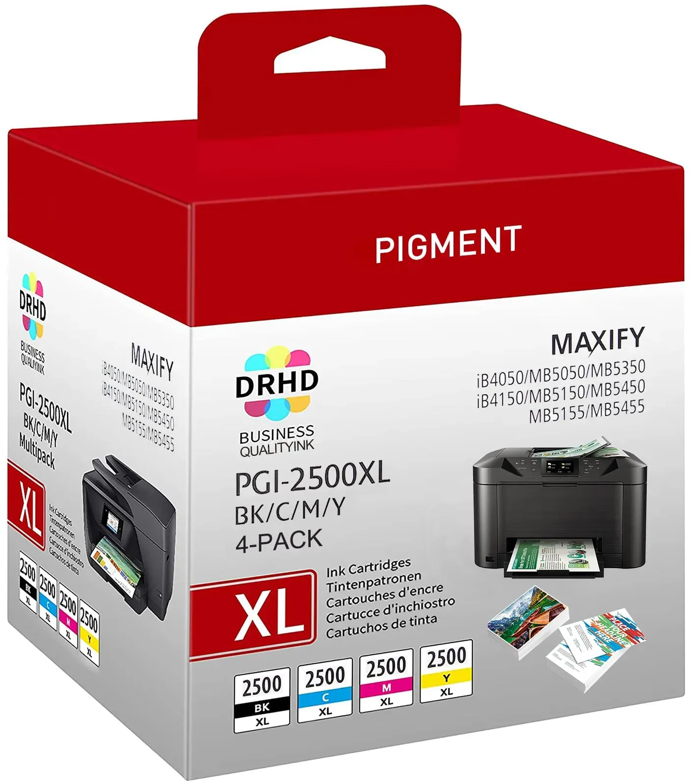 Zustand: Neu - Tintenpatronen für Drucker Tintenpatronen für Tintenstrahldrucker - st@r ink Starink - Starink PGI-2500XL 2500 XL PGI-2500XL 2500 XL MB5150 MB5450 - - Starink PGI-2500 2500XL Kompatible für Tintenpatronen PGI-2500 XL Multipack Kompatible mit MB5150,MB5450,iB4050, MB5050, MB5350, MB5155, MB5455,MB5000,MB5100,MB5300,Maxify MB5450,iB4150,IB4000 Hole Seitenertrag: 2500 Seiten für PGI-2500 XL BK Druckertinte - Schwarz, 1500 Seiten pro 2500XL Farbpatrone ,bei 5% Abdeckunge von A4 Hervorragende Druckqualität: :5er-Pack Starink 2500XL Druckerpatronen (Schwarz, Cyan, Magenta, Gelb) liefert gestochen scharfen Text, satte Farben und foto-realistische Grafiken Starink 2500xl Multipack: Einfache Installation und Verwendung; Smart Chips für stabile Kompatibilität; Professionelle Qualitätstinten für reibungslosen Druck, lebendige Farben und klare Dokumente; Langlebige hohe Kapazität für minimalen Austausch - Verkäufer: STARINK-EU im amazon.de Marketplace Dieses YINGCOLOR Multipack ist eine sehr preiswerte kompatible Option, die eine gute Alternative zu teureren Patronen darstellt. ![]() ![]() YINGCOLOR 2500XL Druckerpatronen Ersatz für Canon 2500XL Multipack kompatibel mit Canon Maxify MB5150 MB5450 MB5455 iB4150 MB5155 iB4050 MB5050 MB5350 (2 Schwarz, 1 Cyan, 1 Magenta, 1 Gelb)