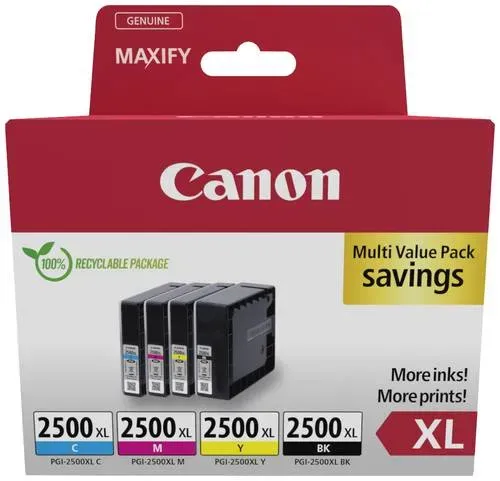 ![]() ![]() Canon PGI-2500 XL C M Y BK Vorteilspack 4 Tintenpatronen größere Reichweite XL (Schwarz XL, Cyan XL, Magenta XL, Gelb XL) Original [Umweltfreundliche Recycle-Kartonverpackung 2024]