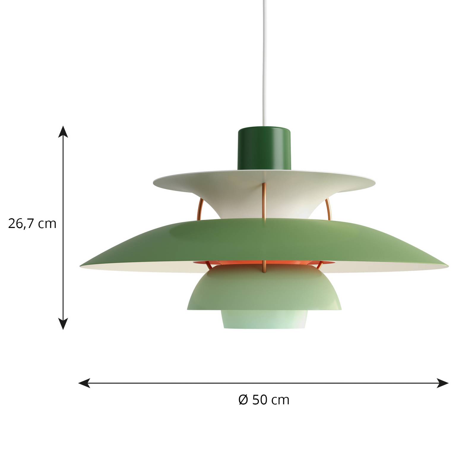 Pendelleuchten leuchten innenleuchten pendelleuchten einzelpendelleuchten Innenbeleuchtung - EAN:5714693451814 - Im Jahr 2020 wurde die Ø 50cm große Louis Poulsen PH 5 Monochrome Pendelleuchte eingeführt, um diesem markanten Design einen aktuellen Look zu verleihen. Die matt lackierten Metallschirme sind in dezenten und - für alle, die es ausgefallener mögen - in auffälligen Farben erhältlich. Mit dieser innovativen Pendelleuchte bietet Louis Poulsen in kleinen so wie in großen Räumen ein harmonisches, direkt-indriektes Licht mit absoluter Blendfreiheit. In ihrem Aufbau folgt sie dem Prinzip eines reflektierenden Dreischirmsystems, das den Großteil des Lichts nach unten abstrahlt. Die Leuchte strahlt das Licht sowohl nach unten als auch zur Seite ab und erhellt sich dadurch selbst. Poul Henningsen entwarf die PH 5 Pendelleuchte im Jahr 1958 als Reaktion auf die ständigen Veränderungen der Form und Größe von Glühlampen. Damals konnte niemand wissen, dass die PH 5 zum Synonym für vollkomme... - gefunden von Kelkoo Die grüne Louis Poulsen PH 5 ist eine dimmbare Option, die eine angenehme Atmosphäre schafft. ![]() Louis Poulsen Design Hängelampe PH 5, dimmbar, grün, für Wohn- / Esszimmer, Aluminium, Design, Pendelleuchte