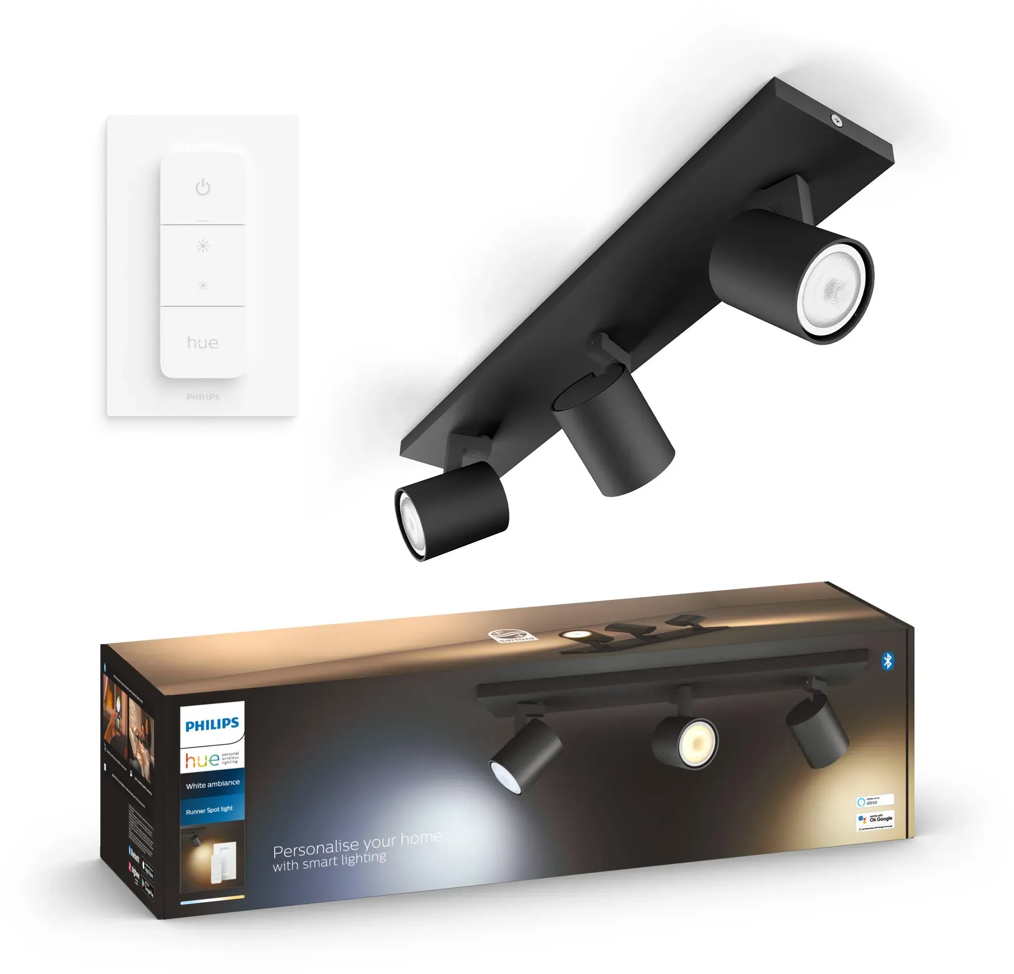 Kategorie: Deckenleuchten - Philips - GTIN:8720169174801 - Der Strahler BRACIA von Philips ist eine praktische und elegante Beleuchtungslösung für den Haushalt das zeitloses Design mit langer Lebensdauer verbindet. Die Lampe ist eine ideale Wahl, um eine angenehme Atmosphäre im Wohnzimmer, im Flur oder sogar über den Küchenarbeitsflächen zu schaffen. Verstellbare Leuchtenköpfe und ein weiter Abstrahlwinkel ermöglichen es Ihnen, das Licht genau dorthin zu richten, wo es benötigt wird. Diese Flexibilität gewährleistet eine gleichmäßige und effiziente Beleuchtung jedes Raums. Die EyeComfort-Technologie rt augenfreundliches Licht ohne störendes Flackern, Stroboskopeffekt oder Blendung und trägt so zu einer angenehmen und gesunden Umgebung bei. Die Lampe besteht aus hochwertigen Materialien mit einem hochwertigen weißen Finish. Beleuchten Sie Ihr Zuhause stilvoll und funktional, indem Sie sich für den Strahler BRACIA entscheiden, auf den eine 5-Jahres- gewährt wird. Einzigartige Produktmerkmale Anpassbares Design EyeComfort-Technologie Hochwertige Verarbeitung Warmweißes Licht Wichtige Produktmerkmale Höhe: 12,5 cm Breite: 8 cm Länge: 60 cm Schutzart: IP20 - 74,09 Euro bei dekolamp.de - gefunden von billiger.de Ein vielseitiges Philips Hue Runner Spot Set mit drei Leuchten und Dimmschalter für individuelle Lichtgestaltung. ![]() ![]() Philips Hue White Amb. Runner Spot 3 flg. schwarz 3x4.2W inkl. Dimmschalter Bundle 2200 - 6500