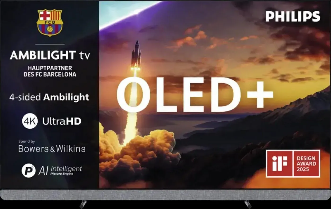Zustand: Neu - Fernseher - Philips TP Vision - 55OLED809/12 - EAN: 8718863042045 - AMBILIGHT TV: Die einzigen TVs mit integrierten LED-Leuchten an der Rückseite, die auf den Bildschirm reagieren und Sie in buntes Licht tauchen. Damit wird alles anders: Ihr TV wirkt größer, und Sie tauchen tiefer in das Geschehen auf dem Bildschirm ein. P5 AI PERFECT PICTURE ENGINE: Philips P5-Prozessor mit KI erzeugt lebensechte Bilder mit einer Deep-Learning-KI für satte Farben und glatten Bewegungen, die dem menschlichen Gehirn ähneln. GOOGLE TV: Filme, Sendungen und mehr als allen Ihren Apps und Abonnements, nur für Sie organisiert. Empfehlungen basierend auf Ihren Vorlieben. Anhand der Google TV-App auf Ihrem Handy können Sie sogar Ihre WatchList pflegen. DOLBY ATMOS UND DOLBY VISION: Filme, Sendungen und Spiele sehen atemberaubend aus und hören sich umwerfend an. Keine enttäuschenden Szenen mehr, die zu dunkel sind, um etwas erkennen zu können. Hören Sie deutlich jedes Wort. OLED AMBILIGHT TV: Das naturgetreue Bild Ihre 4K (UHD) OLED Ambilight TV sieht aus jedem Blickwinkel atemberaubend aus. Schwarz ist immer schwarz, nicht angegraut, und Sie können auch in Schatten oder hellen Bereichen jede Einzelheit erkennen. - 8 Händler im amazon.de Marketplace ![]() kaufland.d e Philips 55OLED910/12, 139,7 cm (55'), 3840 x 2160 Pixel, OLED, Smart-TV, WLAN, Metallisch