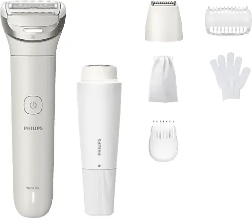 Zustand: Neu - Körperhaartrimmer - Philips - BRL149/00 - EAN: 8720689038201 - Einfache, schnelle und angenehme Rasur selbst schwer erreichbarer Stellen: Dieser kabellose elektrische Damenrasierer entfernt sanft bis zu 0,2 mm kurze Haare und sorgt für ein glattes Hautgefühl Der hochwertigste Philips Lady Shaver mit flexiblem Scherkopf und LED-Licht: Der flexible Scherkopf passt sich den Konturen des Körpers an, das LED-Licht macht jedes einzelne Haar sichtbar Weniger Rasurbrand, weniger Rötungen, mehr sanfte Hautµ: Dieser Haarentferner für Damen hat ein 3-Klingen-System, das hilft, Hautirritationen zu minimieren Dermatoglogisch getestet auf empfindlicher Haut Leichte Handhabung, auch unter der Dusche: Dieser kabellose Damenrasierer hat einen starken Akku mit bis zu 100 Min. Laufzeit; zwei Geschwindigkeitsstufen, Nass- und Trockenrasur, rutschfester Griff Für Beine, Körper und Bikinizone: Der Philips Lady Shaver Series 8000 eignet sich perfekt für die Rasur von Körper, Beinen und Achseln sowie als Bikini-Trimmer Das Set beinhaltet: 1x Lady Shaver, 1x Trimmaufsatz, 1x Bikini-Trimmaufsatz, 1x Bikini-Trimmerkamm, 1x Körperpeeling-Handschuh, 1x Aufbewahrungstasche, 1x USB-A-Kabel (Netzadapter nicht enthalten) - bei Amazon.de Dieser Lady Shaver bietet eine gute Balance aus Preis und Leistung für die Series 8000. ![]() ![]() Philips BRL159/00 Series 8000 Lady Shaver, Weiß
