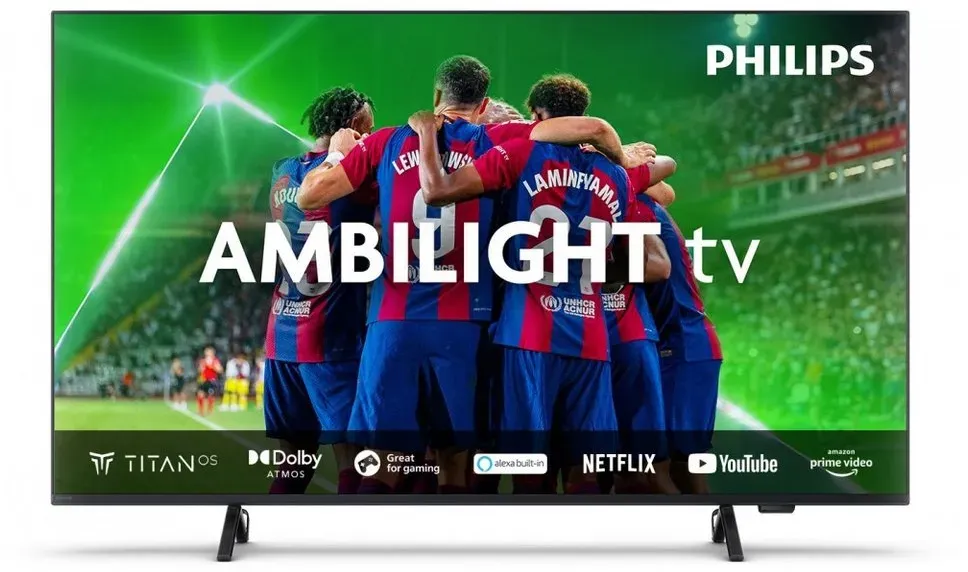 EEK: E - Kategorie: Fernseher - Philips - GTIN:8718863040843 - Sie erwarten mehr von Ihrem nächsten Fernseher? Dieser 4K UHD Ambilight TV bietet ein äußerst scharfes Bild, hervorragenden Dolby Atmos Sound und den für Ambilight typischen Nervenkitzel. Gaming wird zu einem epischen Erlebnis, Filme schaffen eine eigene Welt, und Musik bekommt ihre eigene Lichtshow! 4K LED Ambilight TV. Gestochen scharf und beeindruckend. Tauchen Sie ein in Ihre Lieblingsinhalte. Ambilight TV. Lebendige Anzeige mit gestochen scharfen Bildern. Kein langes Suchen. TITAN OS. Sound wie im Kino. Episches Gaming. Dolby Atmos Sound wie im Kino. Ideal für Gaming. VRR und geringe Eingangsverzögerung auf jeder Konsole. Flacher Fernseher. Nachhaltige Materialien. Fernbedienung aus recyceltem Plastik. Verantwortungsvolle Verpackung. Mit Sprachassistenten kompatibel Ambilight TV Ambilight TVs sind die einzigen Fernseher mit integrierter LED-Beleuchtung auf der Geräterückseite, die auf das reagiert, was Sie sich gerade ansehen, und für faszinierende farbige Lichteffekte sorgt. Das verändert einfach alles: Ihr Fernseher wirkt größer und Sie können noch tiefer in Ihre liebsten Sportarten, Filme, Musik und Games eintauchen. Ultrascharfes Bild Genießen Sie alles, was Sie auf diesem 4K UHD LED Ambilight TV sehen. Die Philips Pixel Precise Ultra HD Engine optimiert die Bildqualität für scharfe Bilder, satte Farben und flüssige Bewegungen. Sie erhalten jedes Mal das beste Fernseherlebnis. Intelligente Plattform ... ![]() ![]()