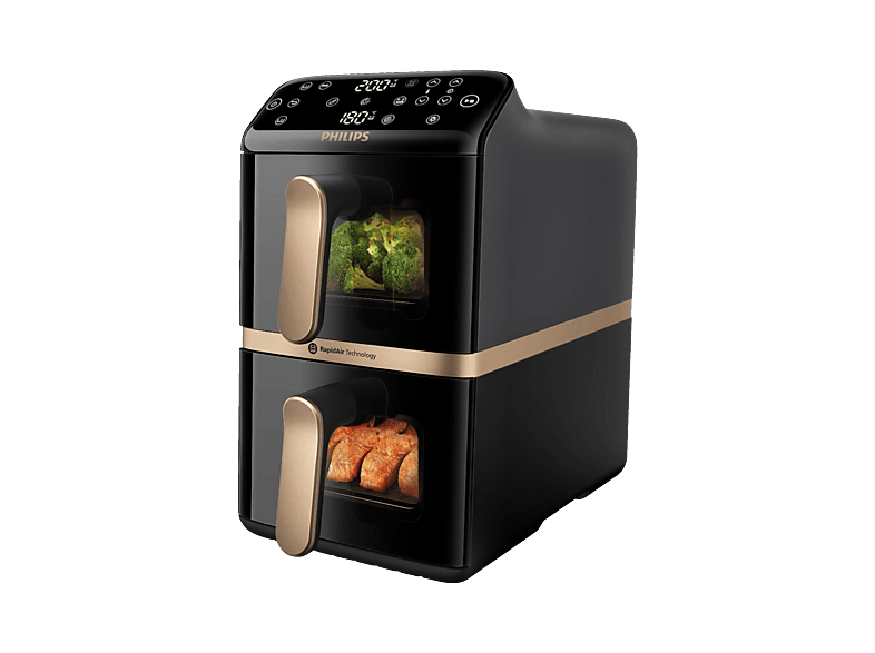 keine Angabe Versand durch AmazonPhilips Airfryer 4000 Series Stacked Dual Basket, Gestapelte Heißluftfritteuse mit 2 Körben, 10L, RapidAir Technologie, 45% weniger Platzbedarf, PFAS-freie Keramikbeschichtung, Sichtfenster (NA460/00)