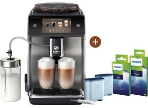 Kaffee Espresso Lifestyle Feinschmecker - - Bestseller. Mit dem Philips Saeco GranAroma Deluxe Kaffeevollautomat SM6685/00 lassen sich sämtliche Kaffeewünsche mit nur einem Tastendruck erfüllen - ob Espresso, Cappuccino oder Latte Macchiato. Durch den CoffeeMaestro kann jede Tasse Kaffee hinsichtlich Kaffeestärke, Kaffeemenge und Vorbenetzungszeit personalisiert werden. Dank der LatteDuo-Funktion lassen sich bis zu zwei Tassen gleichzeitig zubereiten. Für eine einfache Bedienung verfügt das Gerät über ein modernes Farbdisplay mit Touchscreen. Dazu besitzt der Philips Saeco GranAroma Deluxe Kaffeevollautomat SM6685/00 eine integrierte WLAN-Konnektivität, sodass sich die erweiterten Benutzerfunktionen nahtlos über das Display steuern lassen., Technische Daten: Leistung: 1500 W, Spannung: 230, Pumpendruck: 15 bar, Art des Heizsystems: Durchlauferhitzer, Farbe Material: Farbbezeichnung: Edelstahl-Front, Material Mahlwerk: Keramik, Handhabung Komfort: Appfunktionen: Füllmenge für jedes Getränk personalisieren, Kaffeestärke für jedes Getränk personalisieren, Temperatur für jedes Getränk personalisieren, Abtropfschaleneigenschaften: herausnehmbar, Art der Bedienung: Sensortasten, Touch-Bedienung, Displaytechnologie: TFT-Farbdisplay, Wassertankfunktion: nach vorn herausnehmbar, Kaffeezubereitung: Art des Milchsystems: abnehmbarer Milchschlauch, separater Milchbehälter, Mengenregulierung: Milchmenge, Kaffeemenge, Milchschaummenge, Wassermenge, Mahlgradeinstellung: 12-stufig, Maße ... Der Saeco Xelsis Deluxe SM8785/00 ist ein High-End-Kaffeevollautomat mit 22 Kaffeespezialitäten, 8 Benutzerprofilen und 5-Zoll-Touchscreen. ![]() SAECO Kaffeevollautomat 'Saeco Xelsis Deluxe SM8785/00', edelstahl, front, B:28,7cm T:48,7cm, Kaffeevollautomaten, 22 Kaffeespezialitäten, 8 Benutzerprofilen und 5' Touchscreen, Kaffeevollautomat