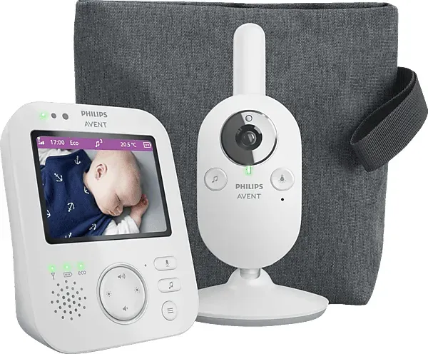 11 Händlerangebote bei billiger.de - Kategorie: Babyphone - Philips - Der PHILIPS Avent SCD892/26 Premium Video Babyphone ist ein hochmodernes Babyphone-System in einem schlanken, weißen Design. Dieses fortschrittliche Babyphone sorgt dafür, dass Sie Ihr Kleines während des Schlafens im Auge behalten können und Ihnen so ein beruhigendes Gefühl geben.Ausgestattet mit einem hochauflösenden 3,5-Zoll-Farbdisplay bietet dieses Babyphone eine kristallklare Videoqualität, mit der Sie jedes kleine Detail der Bewegungen Ihres Babys sehen können. Die Kamera kann leicht eingestellt werden, um den perfekten Betrachtungswinkel zu erreichen und eine optimale Sichtbarkeit zu gewährleisten. Sie verfügt außerdem über eine automatische Infrarot-Nachtsicht, mit der Sie Ihr Baby auch bei völliger Dunkelheit sehen können.Das Premium-Video-Babyphone bietet dank seiner adaptiven FHSS-Technologie eine zuverlässige und hochsichere Verbindung. Dies bedeutet, dass das Babyphone eine private und störungsfreie Verbindung zwischen der Kamera und der Elterneinheit aufrechterhält. Darüber hinaus hat das Babyphone eine Reichweite von bis zu 900 Fuß, sodass Sie sich frei im Haus bewegen können, während Sie Ihr Baby weiterhin überwachen.Eines der herausragenden Merkmale dieses Babyphones ist die Möglichkeit, die Kamera von der Elterneinheit aus fernzusteuern. Sie können schwenken, neigen und zoomen, um einen genaueren Blick auf Ihr Baby zu werfen oder den Raum zu scannen, um seine ... Ein Connected Videophone mit mobiler App-Anbindung für flexible Überwachung. ![]() ![]() Philips Connected SCD953/26
